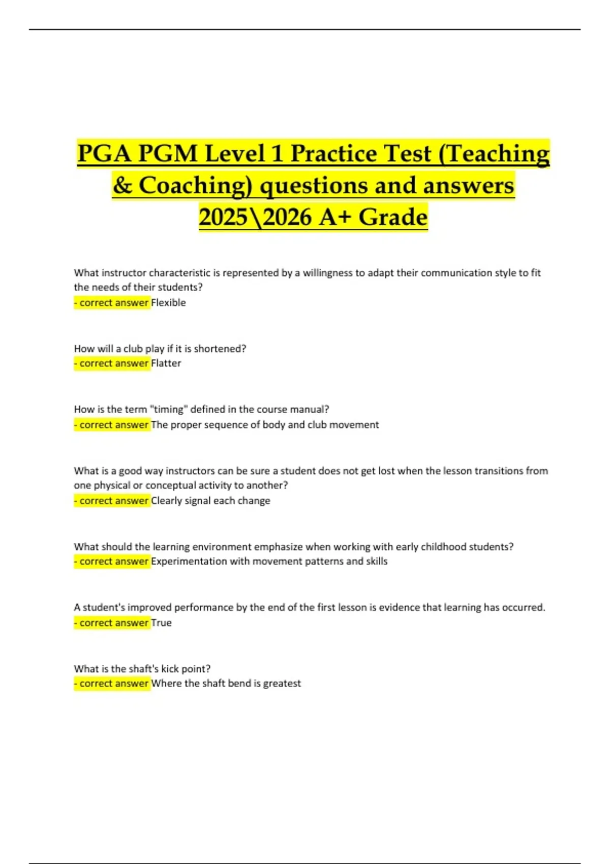& Coaching) questions and answers