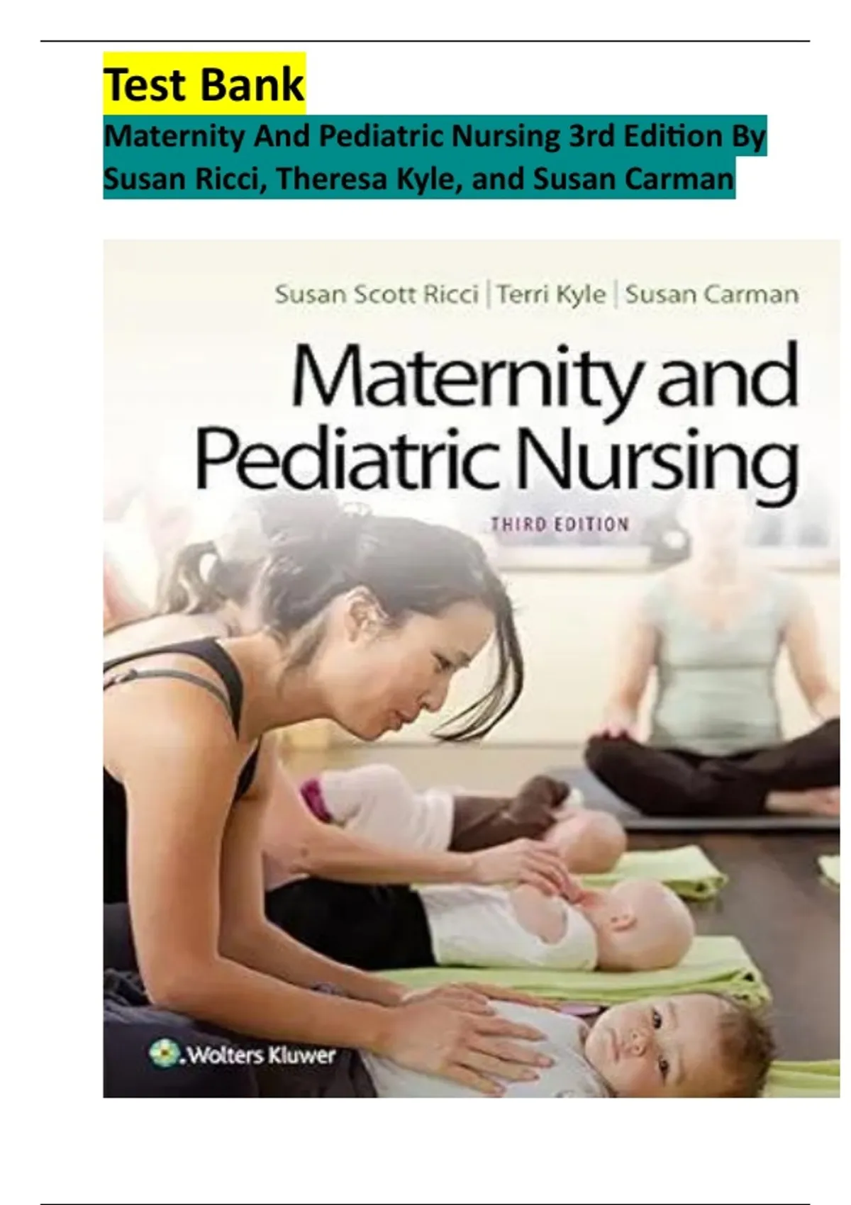 Test Bank Maternity And Pediatric Nursing 3rd Edition By Susan Ricci, Theresa Kyle, and Susan CarmanTest Bank - Maternity and Pediatric Nursing (3rd Edition) by Ricci, Kyle, and Carman 1 Test Bank Maternity and Pediatric Nursing 3rd Edition By Susan Ricci, Theresa Kyle, and Susan Carman Contents Chapter 1- Perspectives on Maternal, Newborn, and Women’s Health Care ................................................................4 Chapter 2- Family-Centered Community-BasedCare....................................................................................................9 Chapter 3- Anatomy and Physiology of the Reproductive System...............................................................................14 Chapter 4- Common Reproductive Issues....................................................................................................................19 Chapter 5- Sexually Transmitted Infections.................................................................................................................24 Chapter 6- Disorders of the Breasts .............................................................................................................................29 Chapter 7- Benign Disorders of the Female Reproductive Tract..................................................................................34 Chapter 8- Cancers of the Female Reproductive Tract.................................................................................................39 Chapter 9- Violence and Abuse ...................................................................................................................................44 Chapter 10- Fetal Development and Genetics..............................................................................................................49 Chapter 11- Maternal Adaptation During Pregnancy...................................................................................................54 Chapter 12- Nursing Management During Pregnancy..................................................................................................60 Chapter 13- Labor and Birth Process...........................................................................................................................66 Chapter 14- Nursing Management During Labor and Birth .........................................................................................72 Chapter 15- Postpartum Adaptations ...........................................................................................................................78 Chapter 16- Nursing Management During the Postpartum Period ...............................................................................84 Chapter 17- Newborn Transitioning ............................................................................................................................90 Chapter 18- Nursing Management of the Newborn......................................................................................................96 Chapter 19- Nursing Management of Pregnancy at Risk- Pregnancy.........................................................................102 Chapter 20- Nursing Management of the Pregnancy at Risk......................................................................................108 Chapter 21- Nursing Management of Labor and Birth at Risk ...................................................................................114 Chapter 22- Nursing Management of the Postpartum Woman at Risk .......................................................................120 Chapter 23- Nursing Care of the Newborn With Special Needs.................................................................................126 Chapter 24- Nursing Management of the Newborn at Risk........................................................................................132 Chapter 25- Growth and Development of the Newborn and Infant............................................................................138 Chapter 26- Growth and Development of the Toddler...............................................................................................144 Chapter 27- Growth and Development of the Preschooler.........................................................................................150 Chapter 28- Growth and Development of the School-Age Child ...............................................................................157 Chapter 29- Growth and Development of the Adolescent..........................................................................................164 Test Bank - Maternity and Pediatric Nursing (3rd Edition) by Ricci, Kyle, and Carman 2 Chapter 30- Atraumatic Care of Children and Families.............................................................................................171 Chapter 31- Health Supervision .................................................................................................................................176 Chapter 32- Health Assessment of Children ..............................................................................................................183 Chapter 33- Caring for Children in Diverse Settings .................................................................................................190 Chapter 34- Caring for the Special Needs Child ........................................................................................................197 Chapter 35- Key Pediatric Nursing Interventions.......................................................................................................203 Chapter 36- Pain Management in Children ................................................................................................................210 Chapter 37- Nursing Care of the Child With an Infectious or Communicable Disorder ............................................217 Chapter 38- Nursing Care of the Child With an Alteration in Intracranial Regulatio