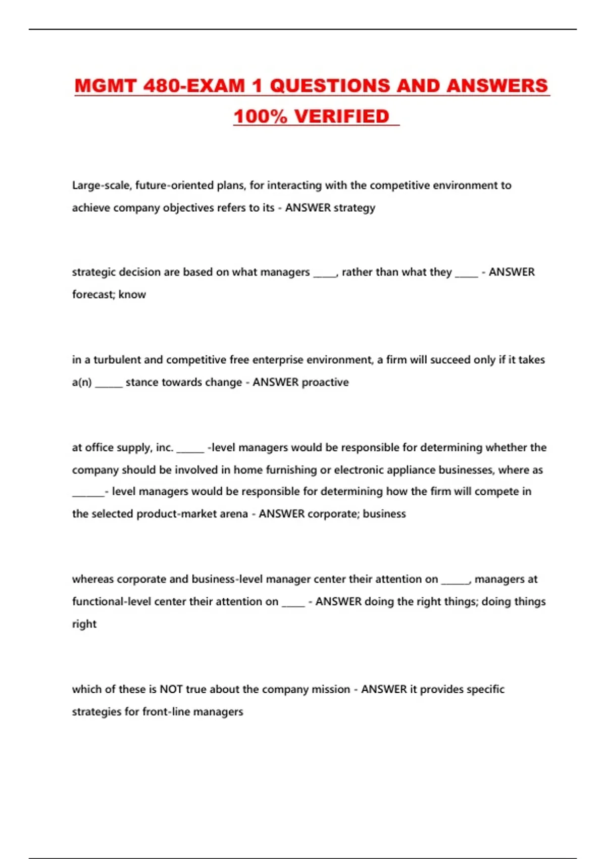 MGMT 480-EXAM 1 QUESTIONS AND ANSWERS 100% VERIFIED ...