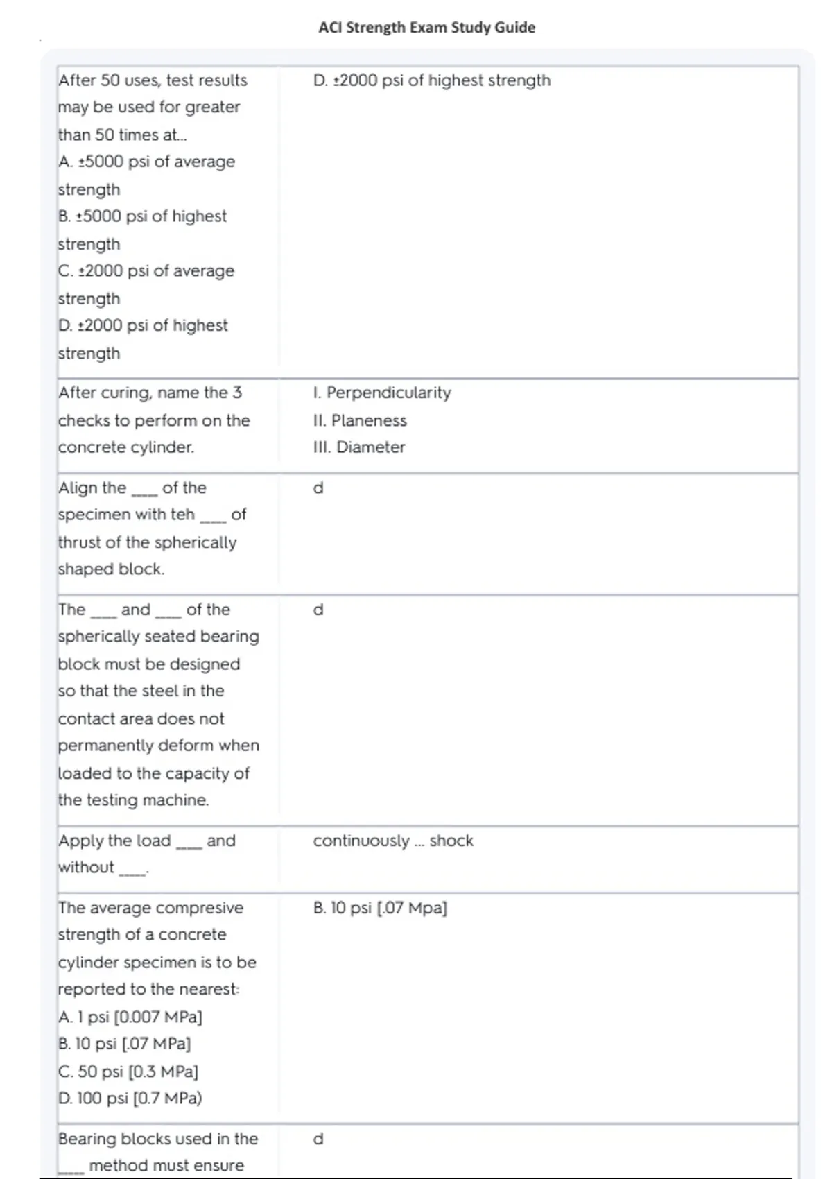 ACI Strength Exam Study Guide