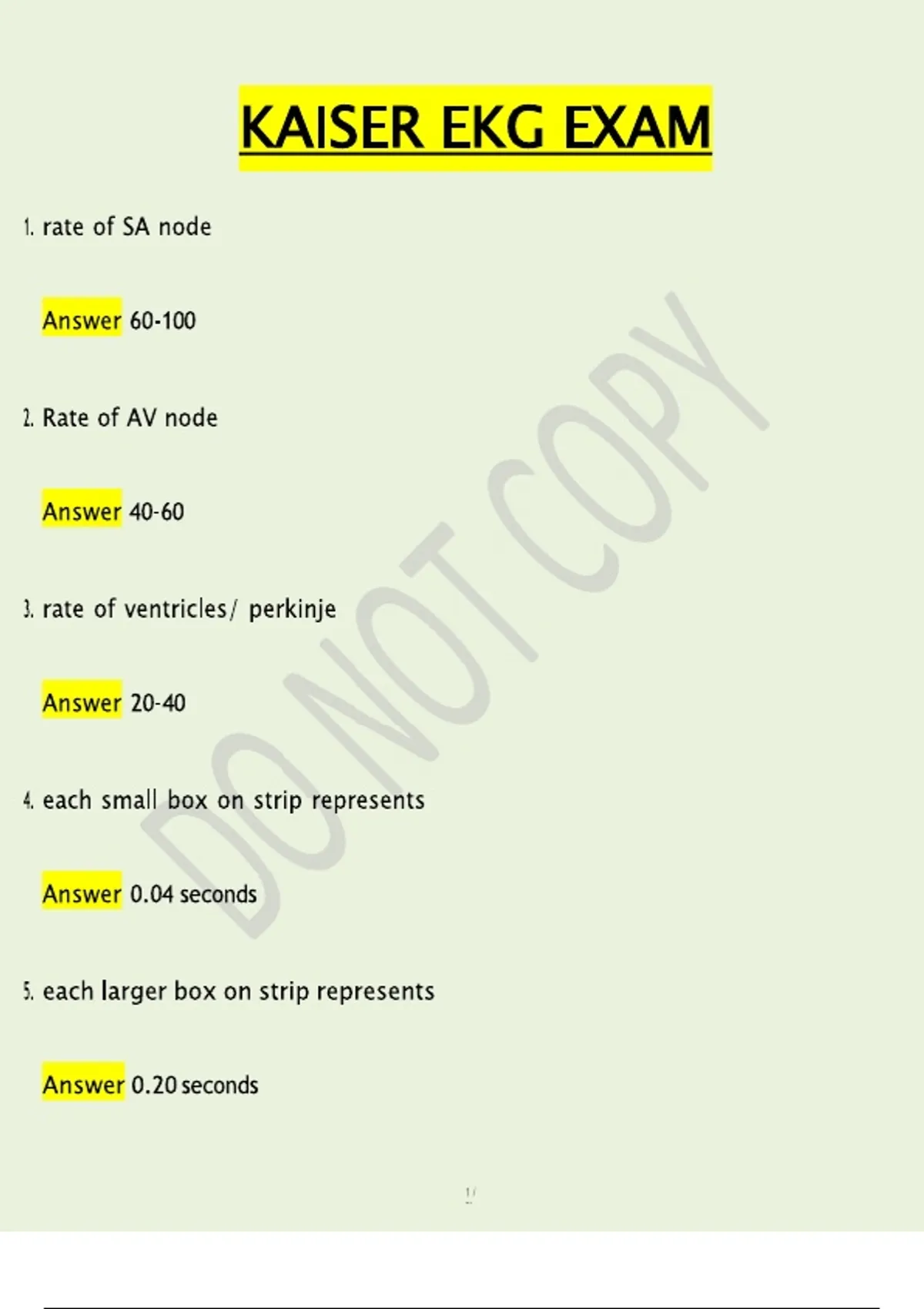 This document is a comprehensive Kaiser Permanente EKG Exam preparation resource for 2025–2026, featuring a curated bank of exam-style questions with verified answers aligned to Kaiser cardiac monitoring and telemetry competency standards. It is designed to support healthcare professionals preparing for Kaiser EKG assessments by reinforcing accurate rhythm recognition, ECG interpretation, and clinical decision-making. The material covers normal and abnormal cardiac rhythms, including sinus rhythms, atrial dysrhythmias, junctional rhythms, heart blocks, ventricular arrhythmias, and pacemaker rhythms. Additional focus areas include ECG waveform analysis, intervals and segments, lead placement, rate and rhythm calculation, axis interpretation, and identification of life-threatening arrhythmias. This resource is ideal for EKG technicians, telemetry technicians, nurses, medical assistants, and allied health professionals preparing for Kaiser Permanente EKG exams, annual competencies, onboarding assessments, or refresher training. It reflects real exam structure and difficulty, making it highly effective for confident, exam-ready preparation