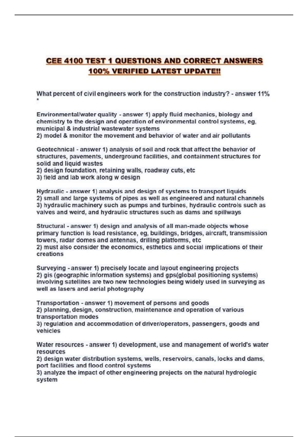 CEE 4100 TEST 1 QUESTIONS AND CORRECT ANSWERS 100% VERIFIED LATEST UPDATE!!...