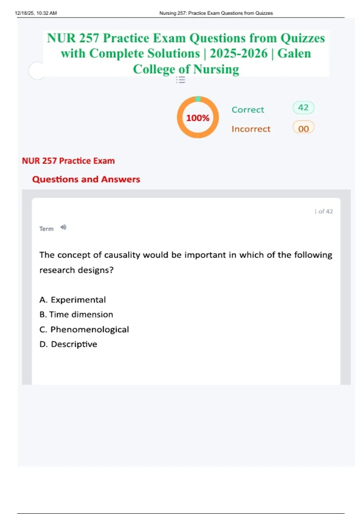 , 12/18/25, 10:32 AM Nursing 257: Practice Exam Questions from Quizzes