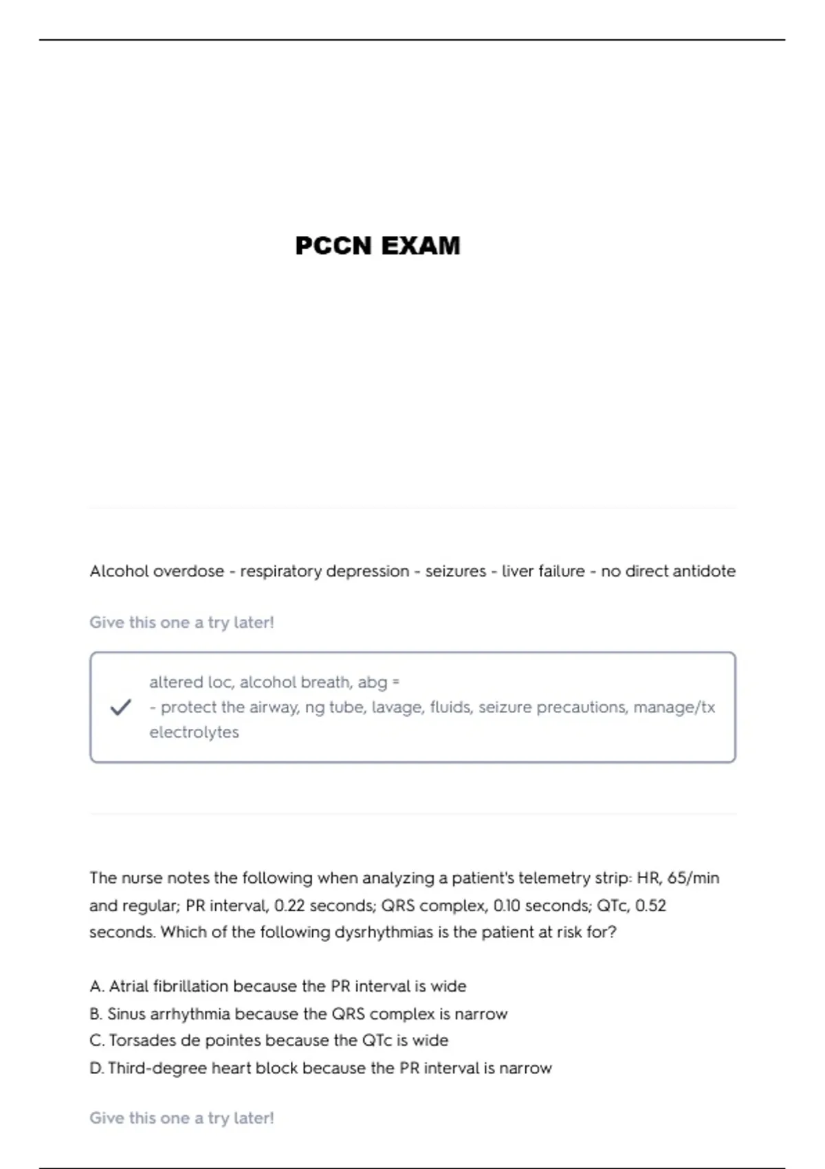 and regular; PR interval, 0.22 seconds; QRS complex, 0.10 seconds; QTc, 0.52