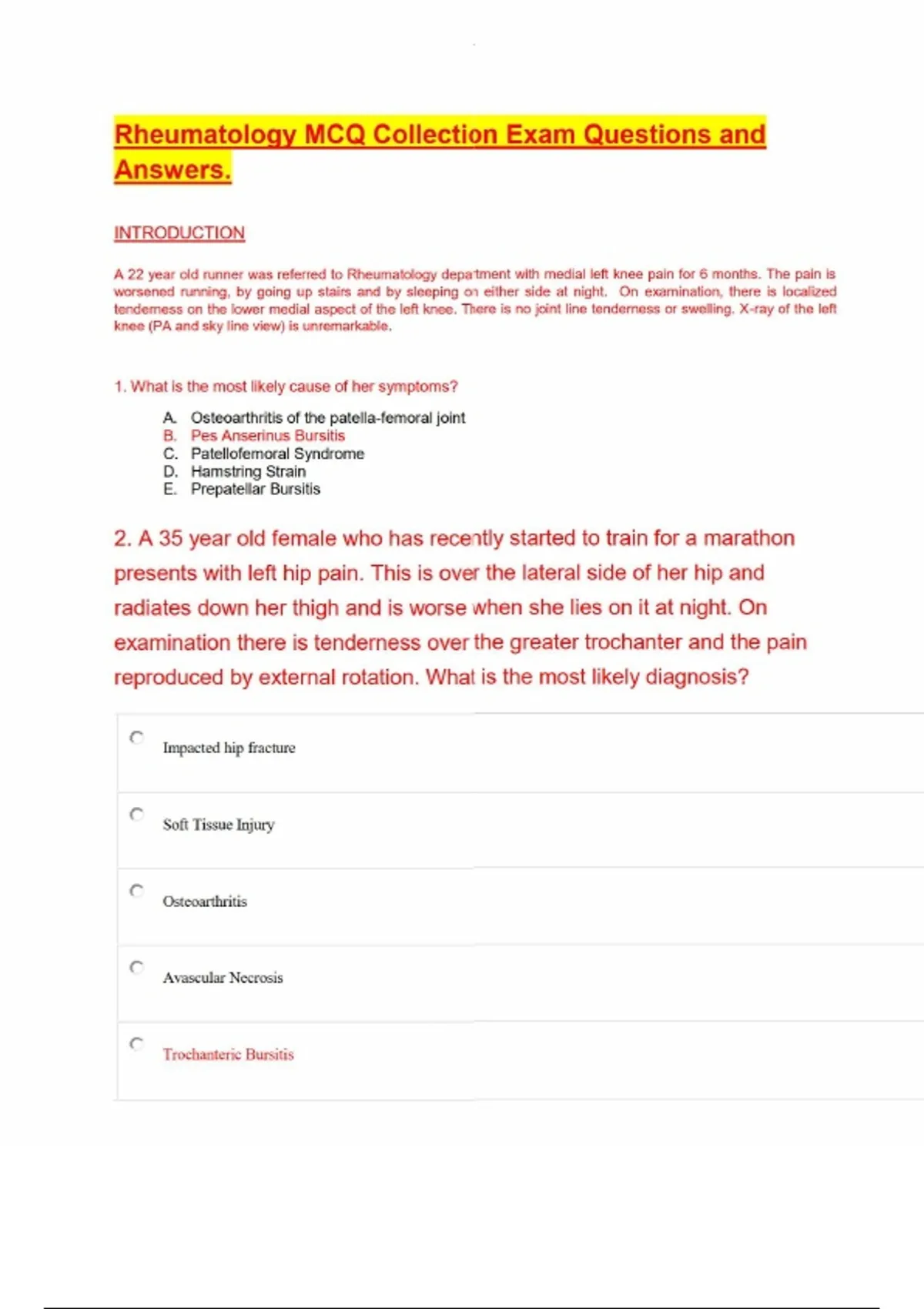 Rheumatology MCQ Collection Exam Questions and Answers.Rheumatology MCQ Collection Exam Questions and Answers.