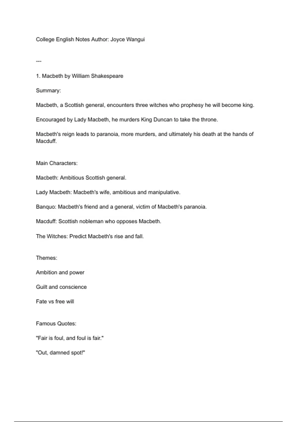 Lady Macbeth: Macbeth's wife, ambitious and manipulative.