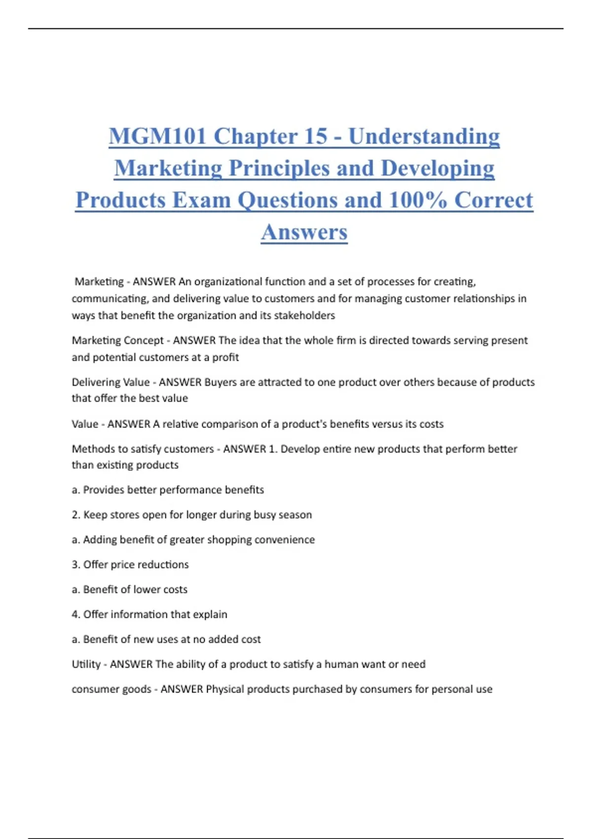 MGM101 Chapter 15 - Understanding Marketing Principles and Developing Products Exam Questions and 100% Correct Answers