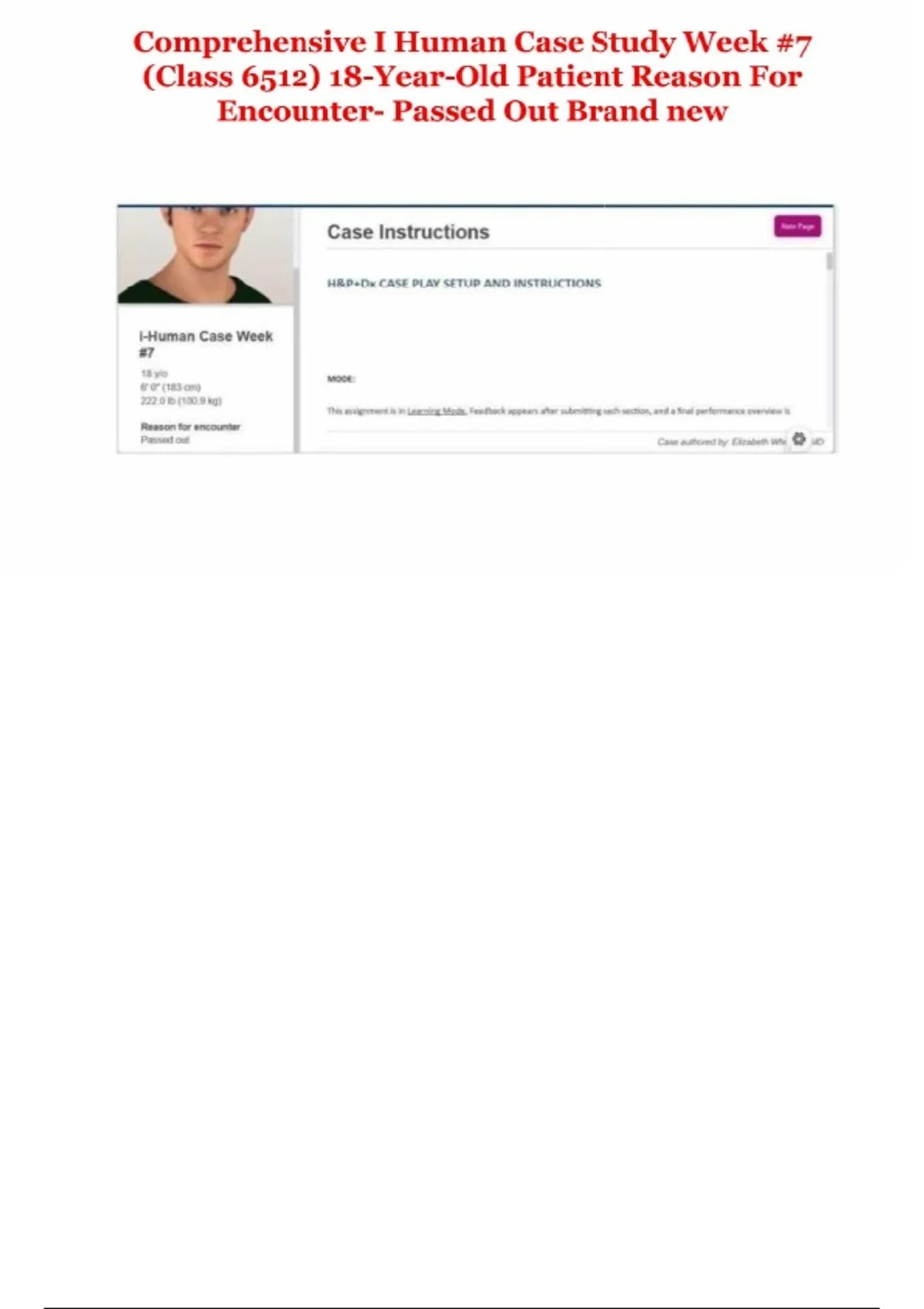 Comprehensive I Human Case Study Week -7 (Class 6512) 18-Year-Old Patient Reason For Encounter- Passed Out Brand new.pdf