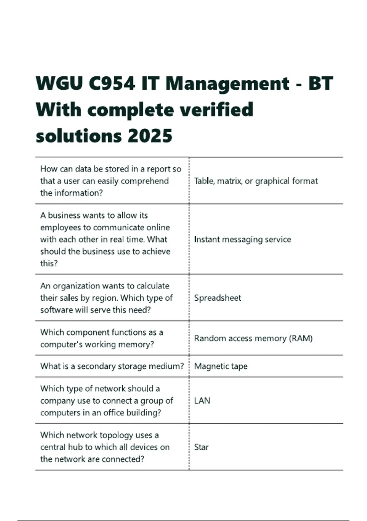 WGU C954 IT Management - BT With complete verified solutions 2025.