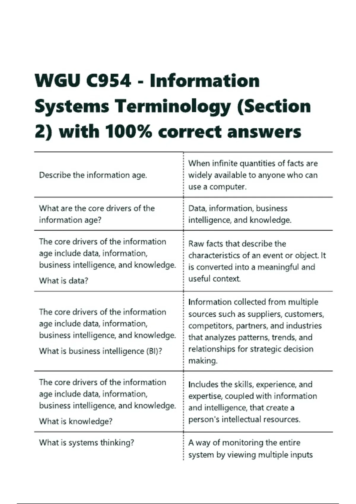 WGU C954 - Information Systems Terminology (Section 2) with 100- correct answers.