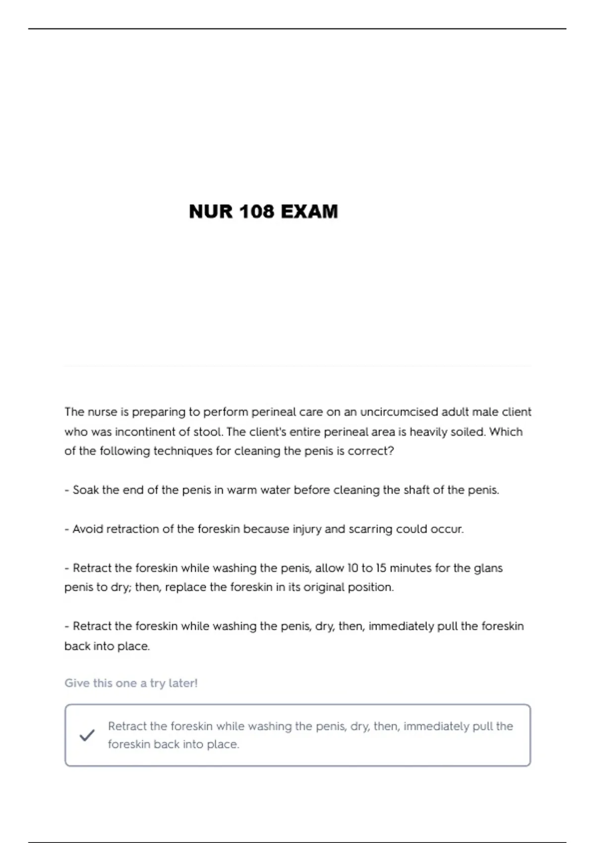 NUR 108 TEST 1 QUESTIONS AND VERIFIED ANSWERS