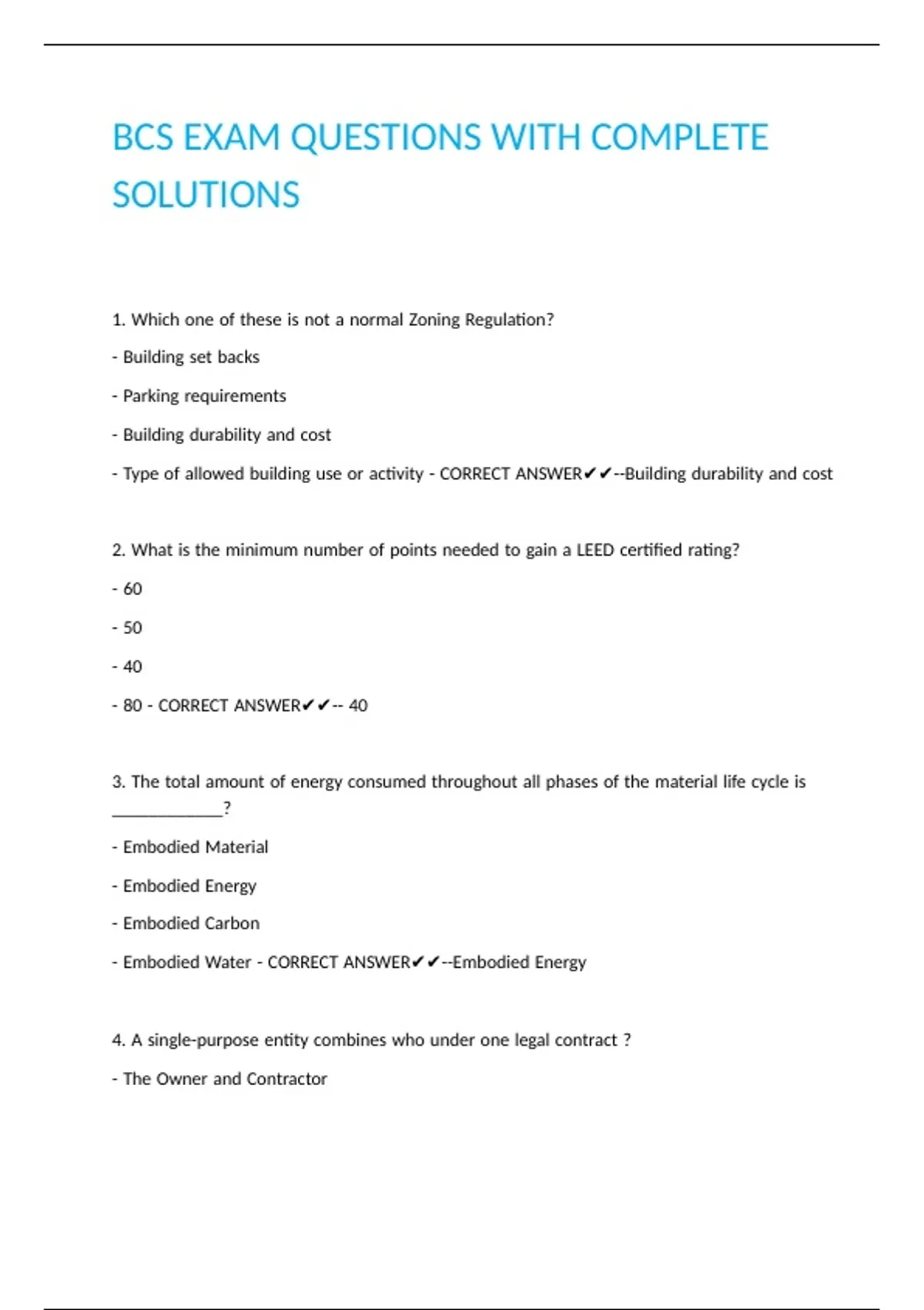 BCS EXAM QUESTIONS WITH COMPLETE