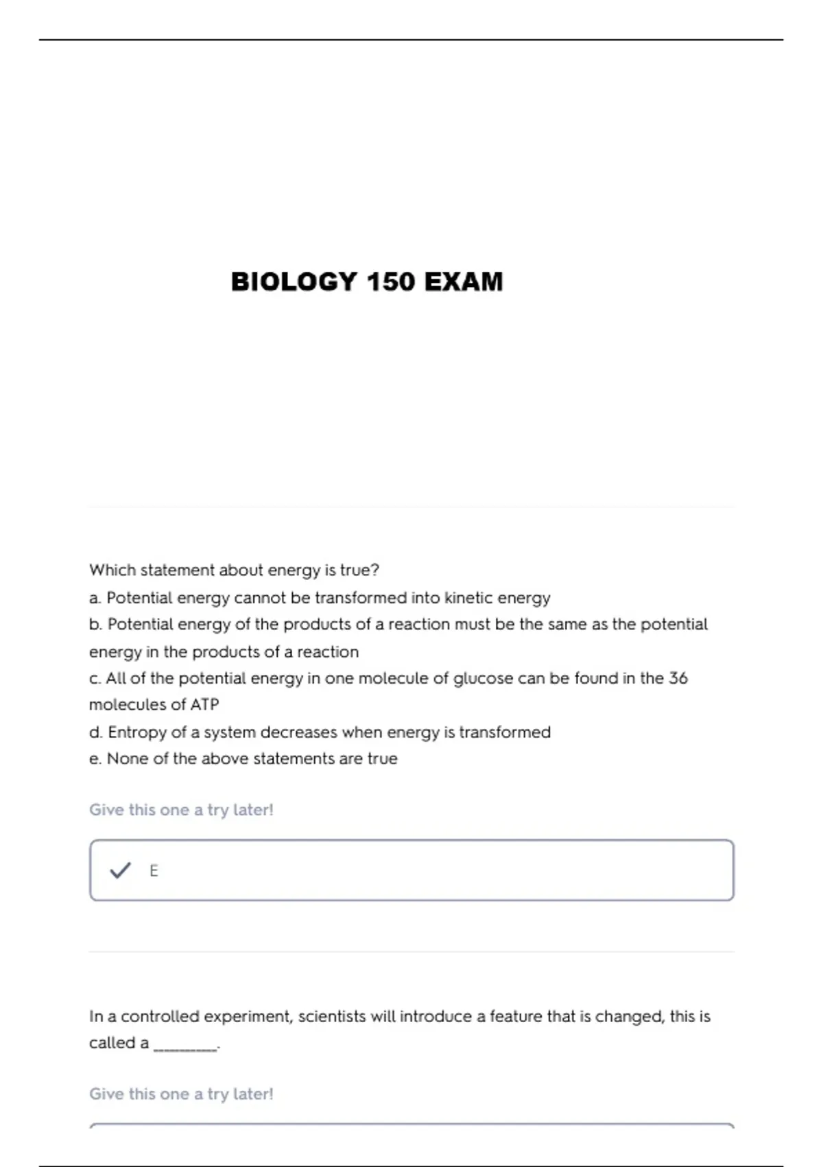 b. Potential energy of the products of a reaction must be the same as the potential