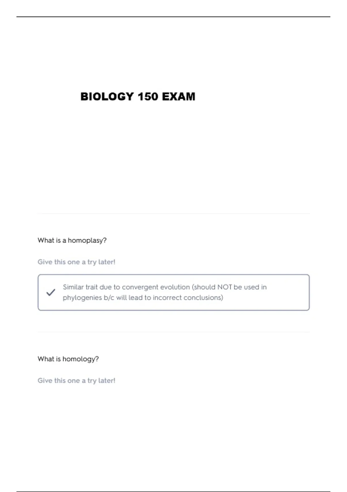 BIO 150 PHYLOGENETICS QUESTIONS AND VERIFIED ANSWERS