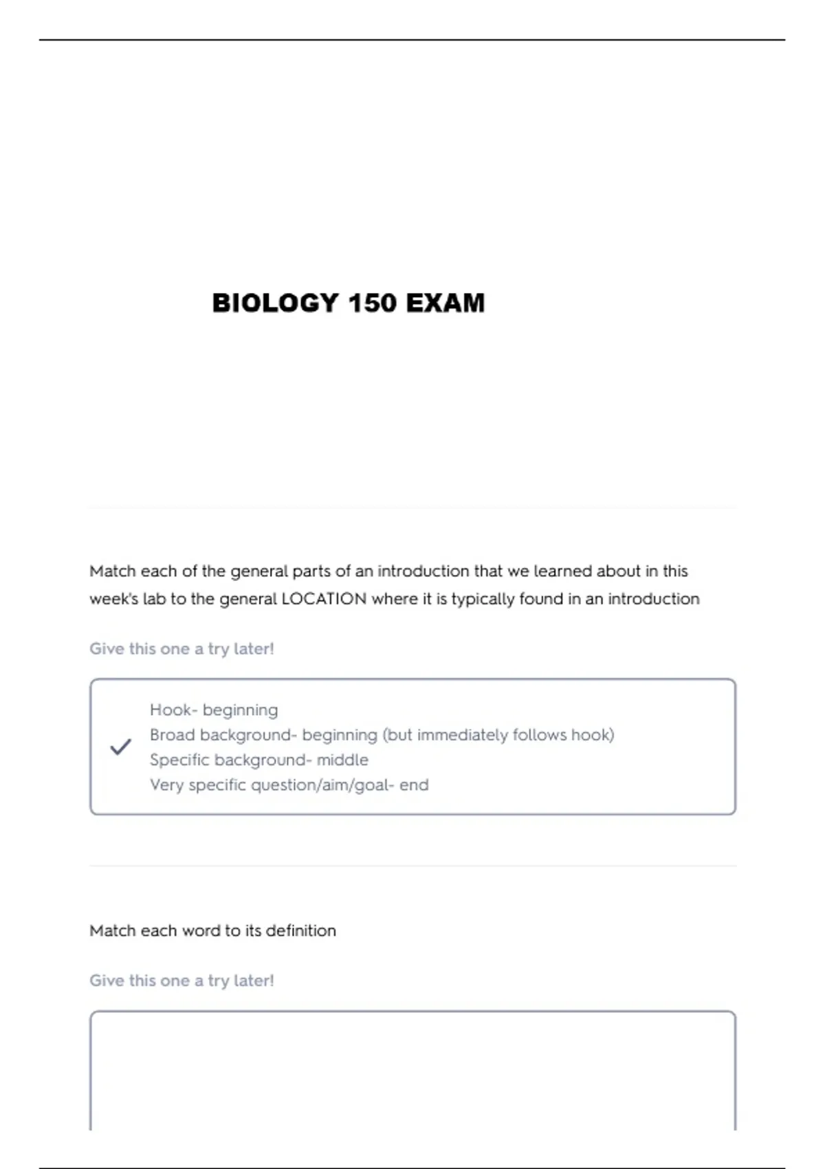 BIO 150 LAB QUIZZES QUESTIONS AND VERIFIED ANSWERS