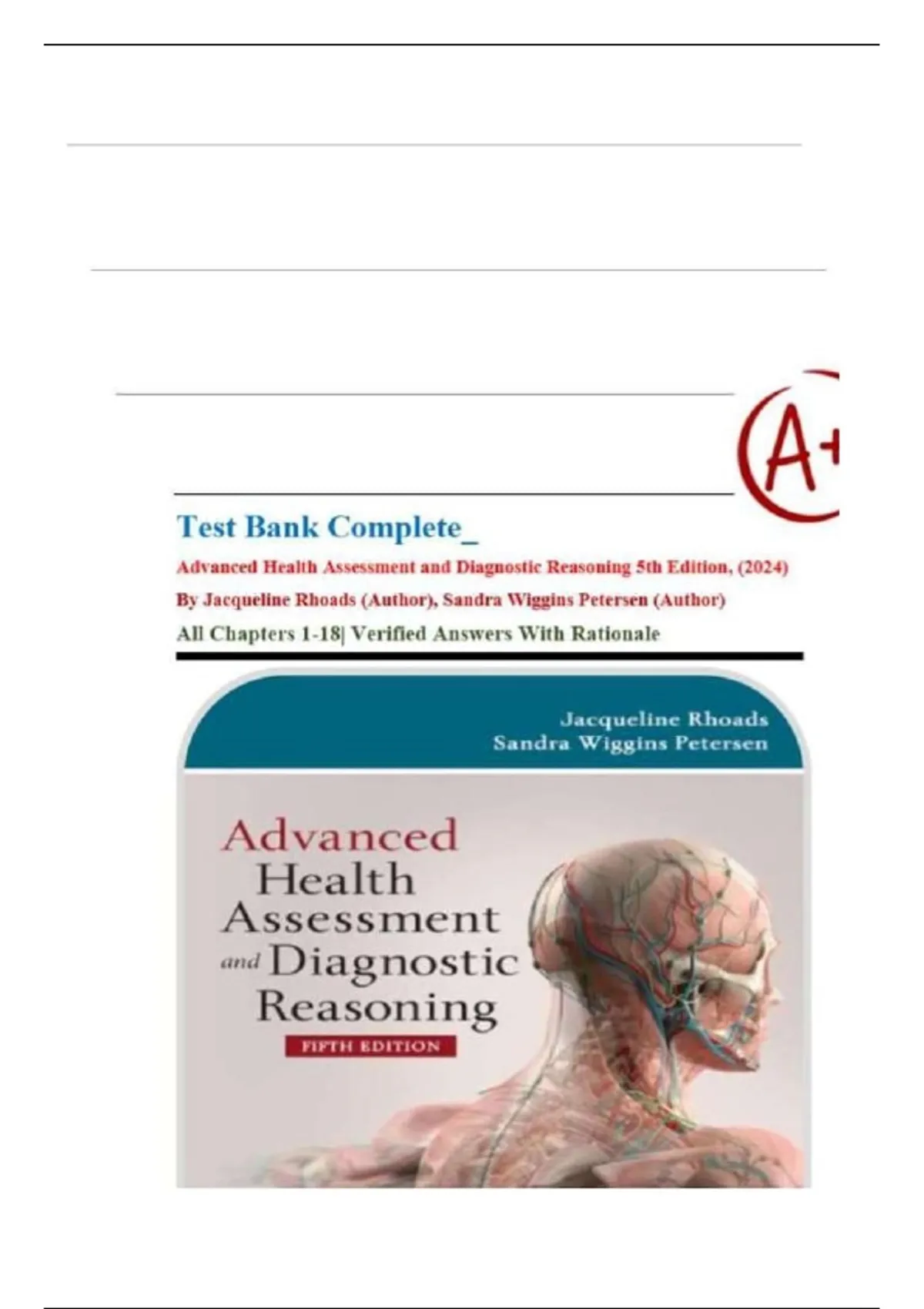 , Test Bank for Advanced Health Assessment and Diagnostic Reasoning 4th Edition Rhoads (Test Ban