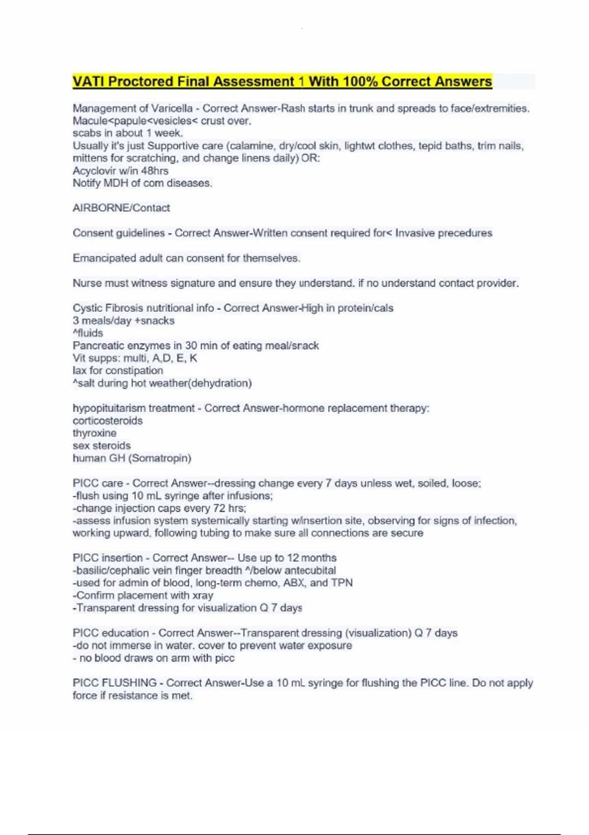 VATI Proctored Final Assessment 1 With 100% Correct Answers