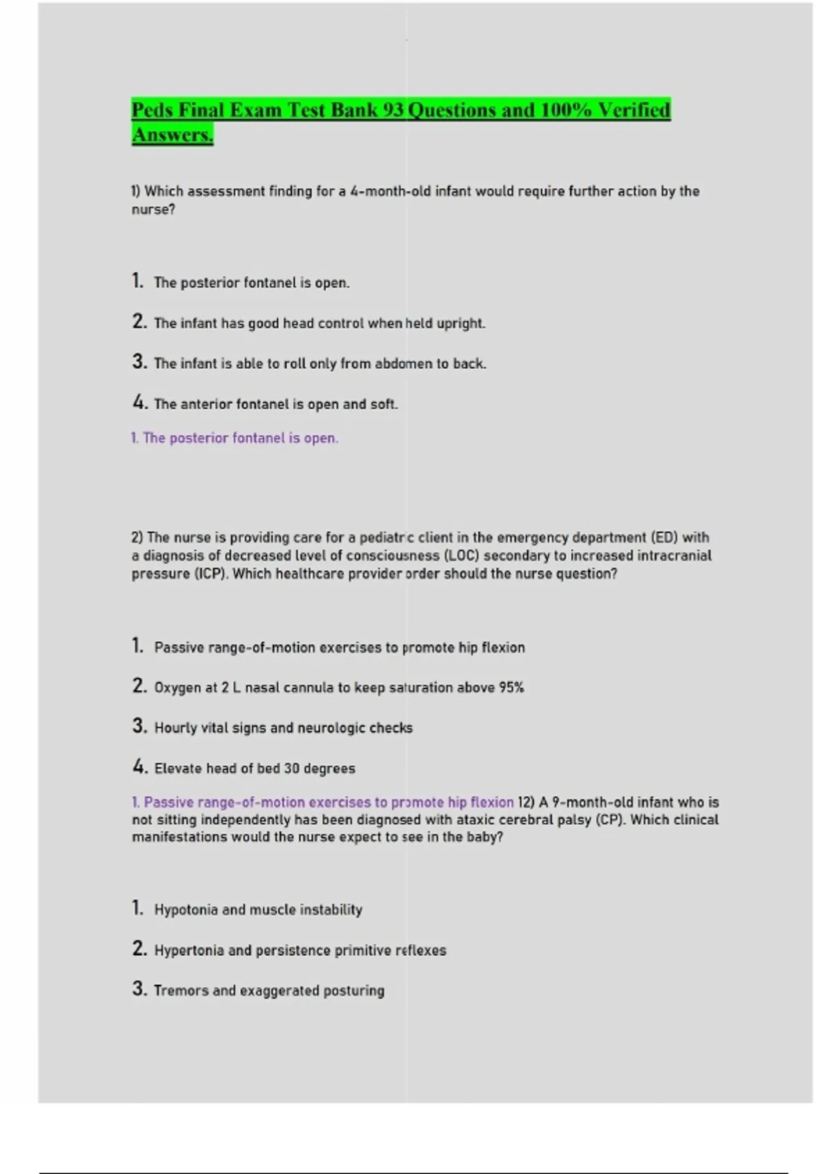 Peds Final Exam Test Bank 93 Questions and 100% Verified Answers.