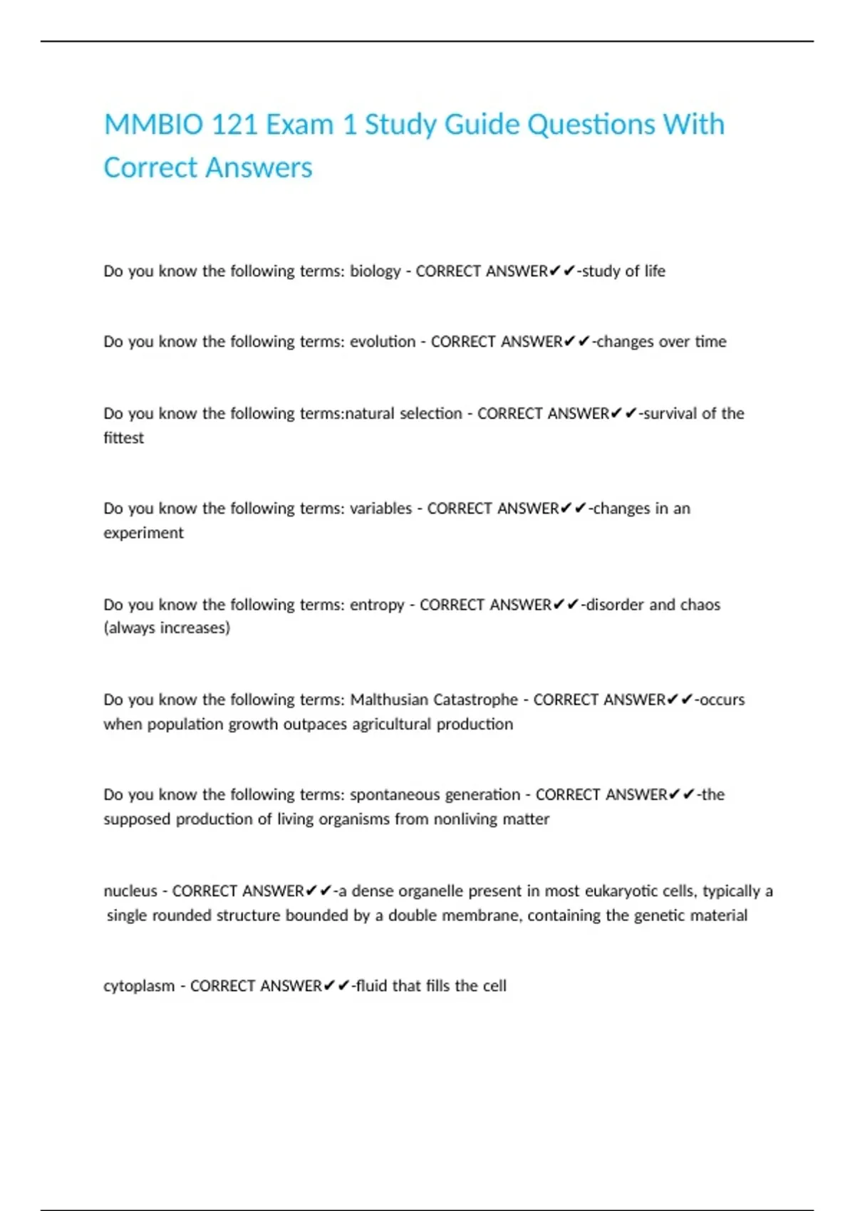 Do |you |know |the |following |terms: |biology |- |CORRECT |ANSWER✔✔-study |of |life
