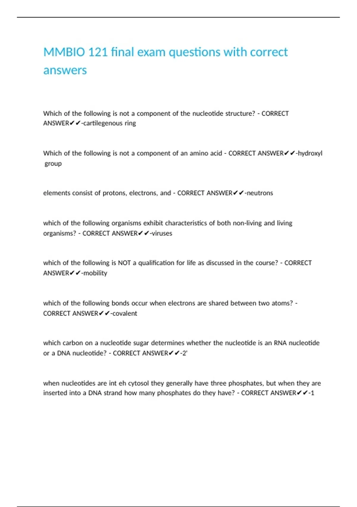 MMBIO 121 final exam questions with correct