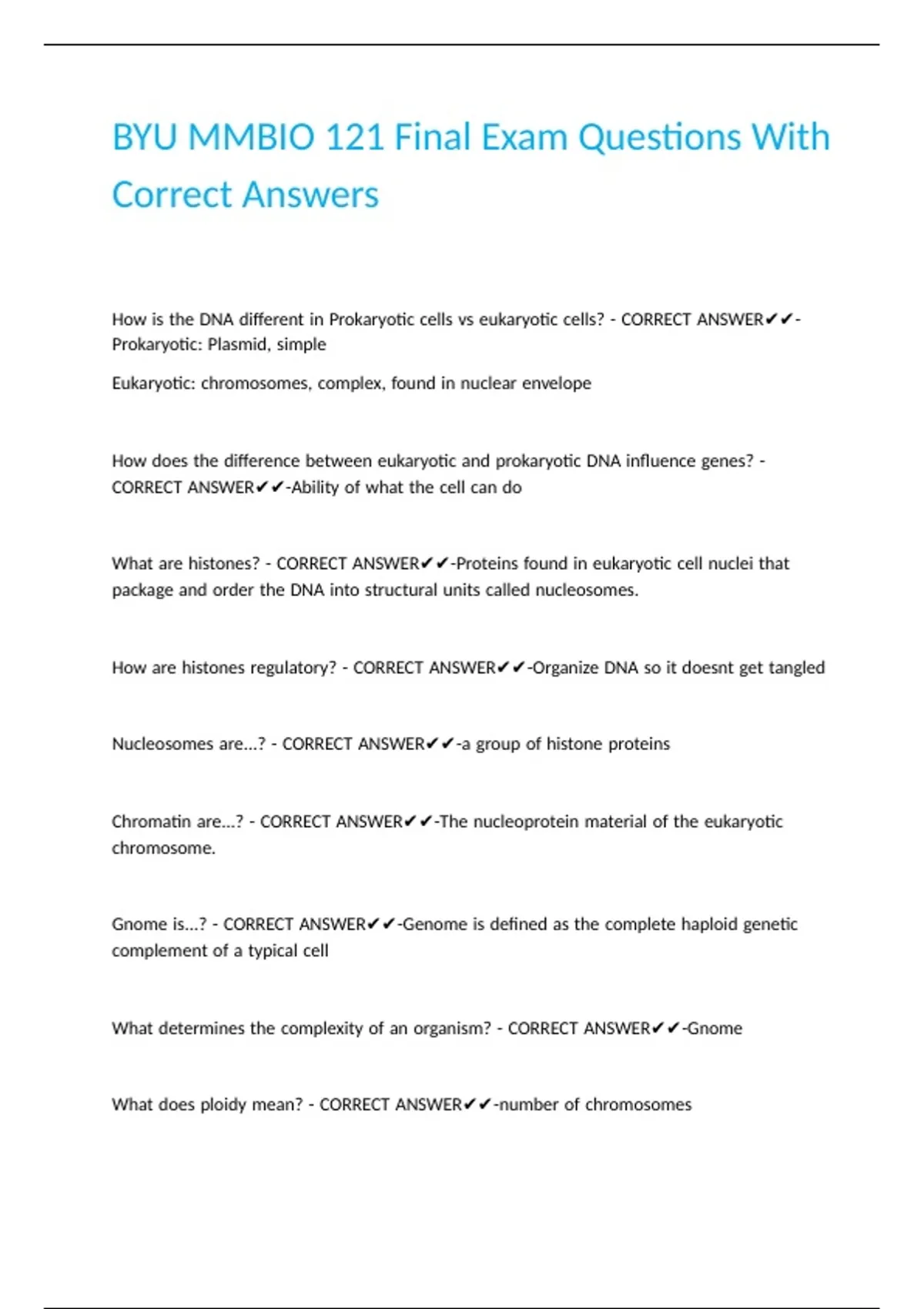 BYU MMBIO 121 Final Exam Questions With Correct Answers.