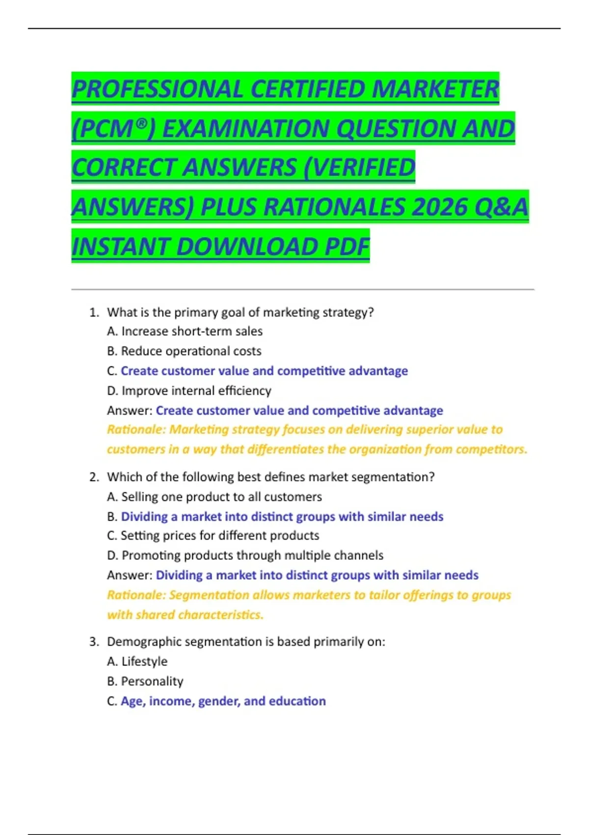 ANSWERS) PLUS RATIONALES 2026 Q&A