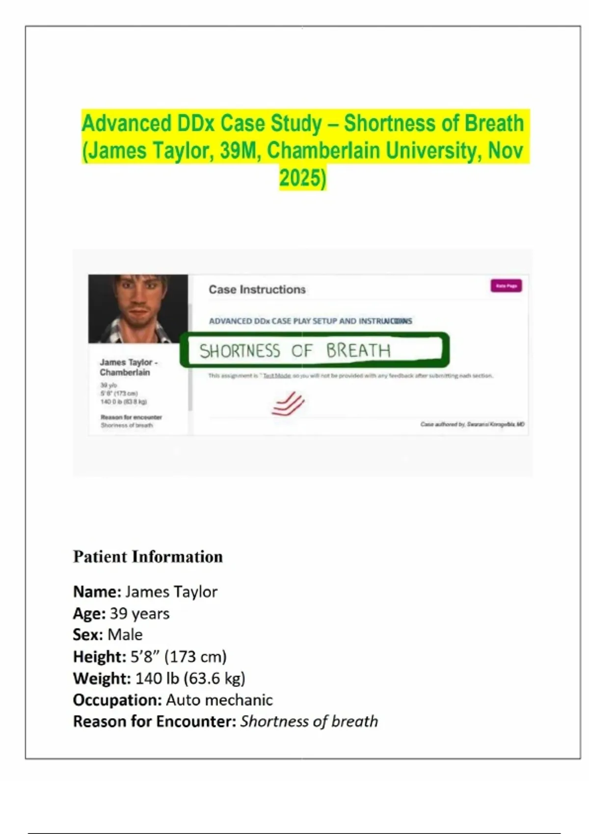 Advanced DDx Case Study – Shortness of Breath (James Taylor, 39M, Chamberlain University, Nov 2025).pdf Advanced DDx Case Study – Shortness of Breath (James Taylor, 39M, Chamberlain University, Nov 2025).pdf Advanced DDx Case Study – Shortness of Breath (James Taylor, 39M, Chamberlain University, Nov 2025).pdf