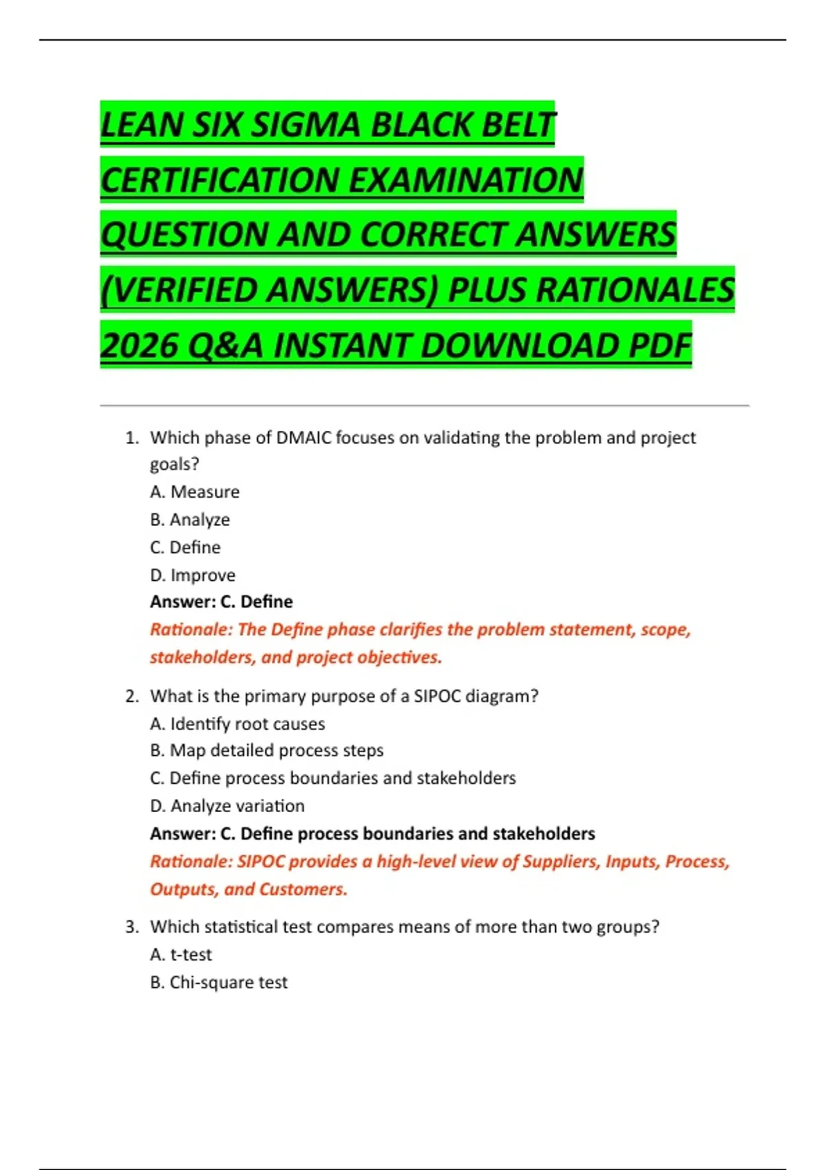 (VERIFIED ANSWERS) PLUS RATIONALES