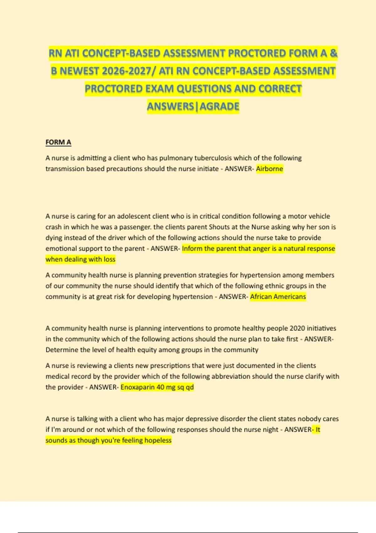 B NEWEST 2026-2027/ ATI RN CONCEPT-BASED ASSESSMENT