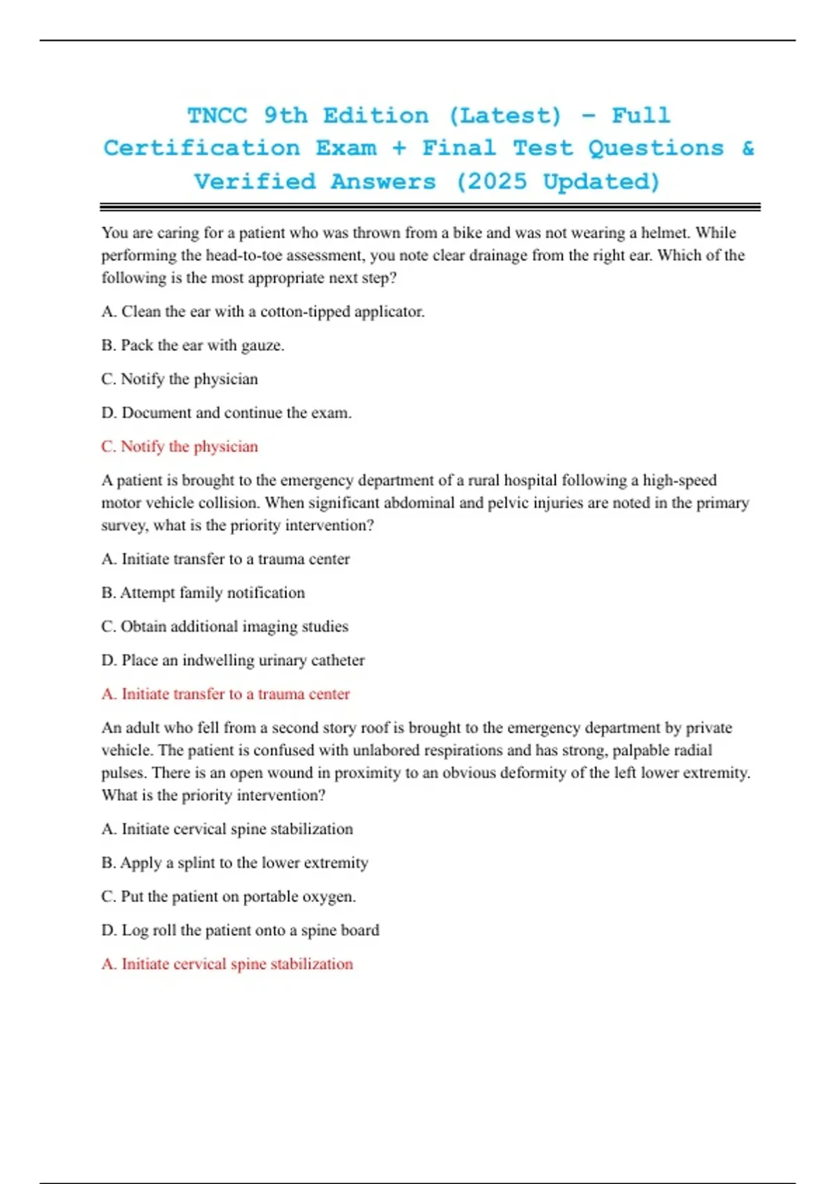 performing the head-to-toe assessment, you note clear drainage from the right ear. Which of the