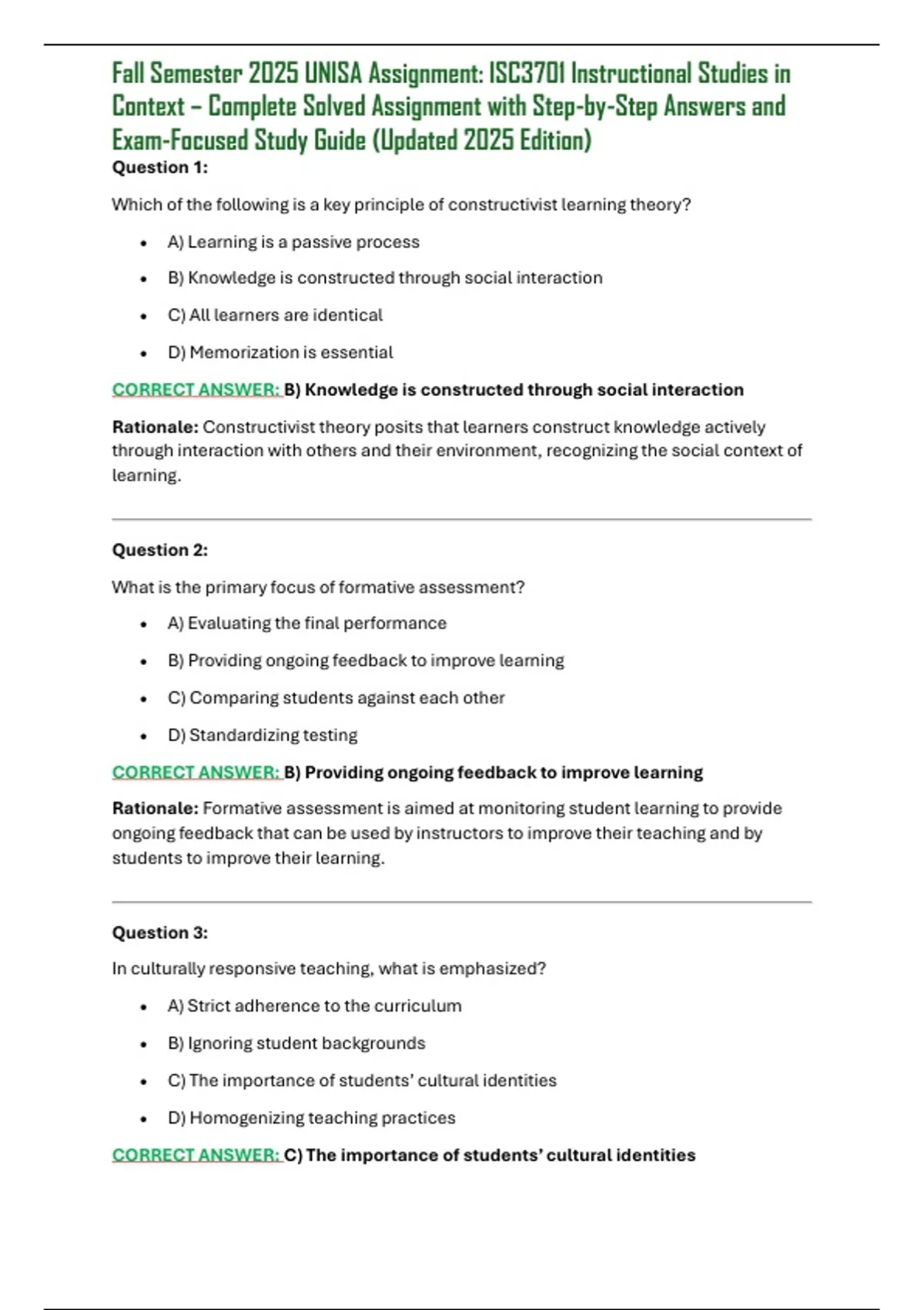 Fall Semester 2025 UNISA Assignment: ISC3701 Instructional Studies in