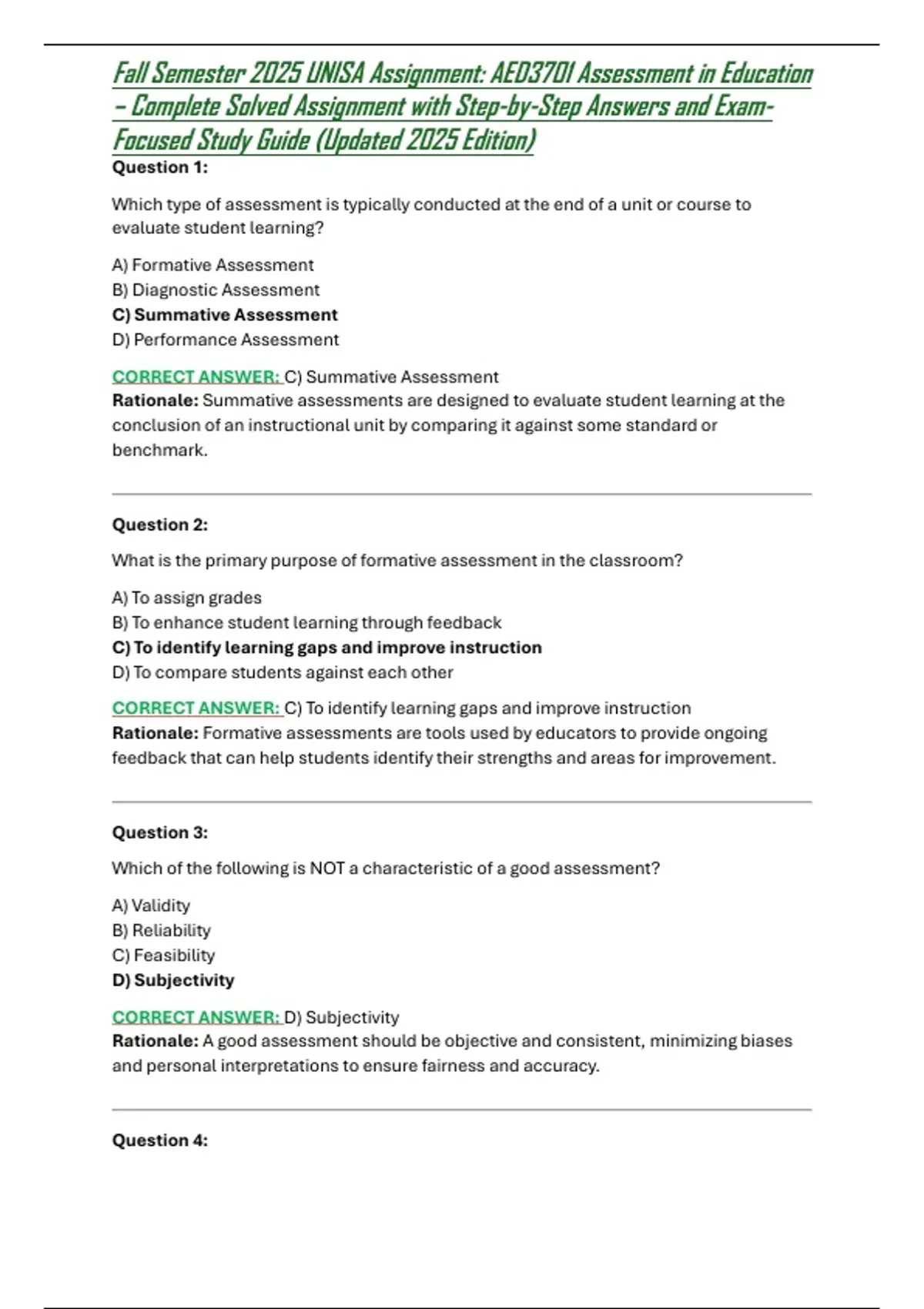 Rationale: A good assessment should be objective and consistent, minimizing biases