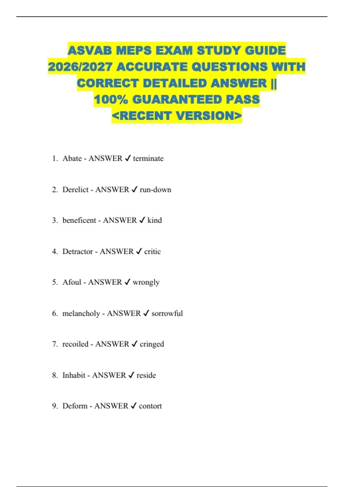 2026/2027 ACCURATE QUESTIONS WITH