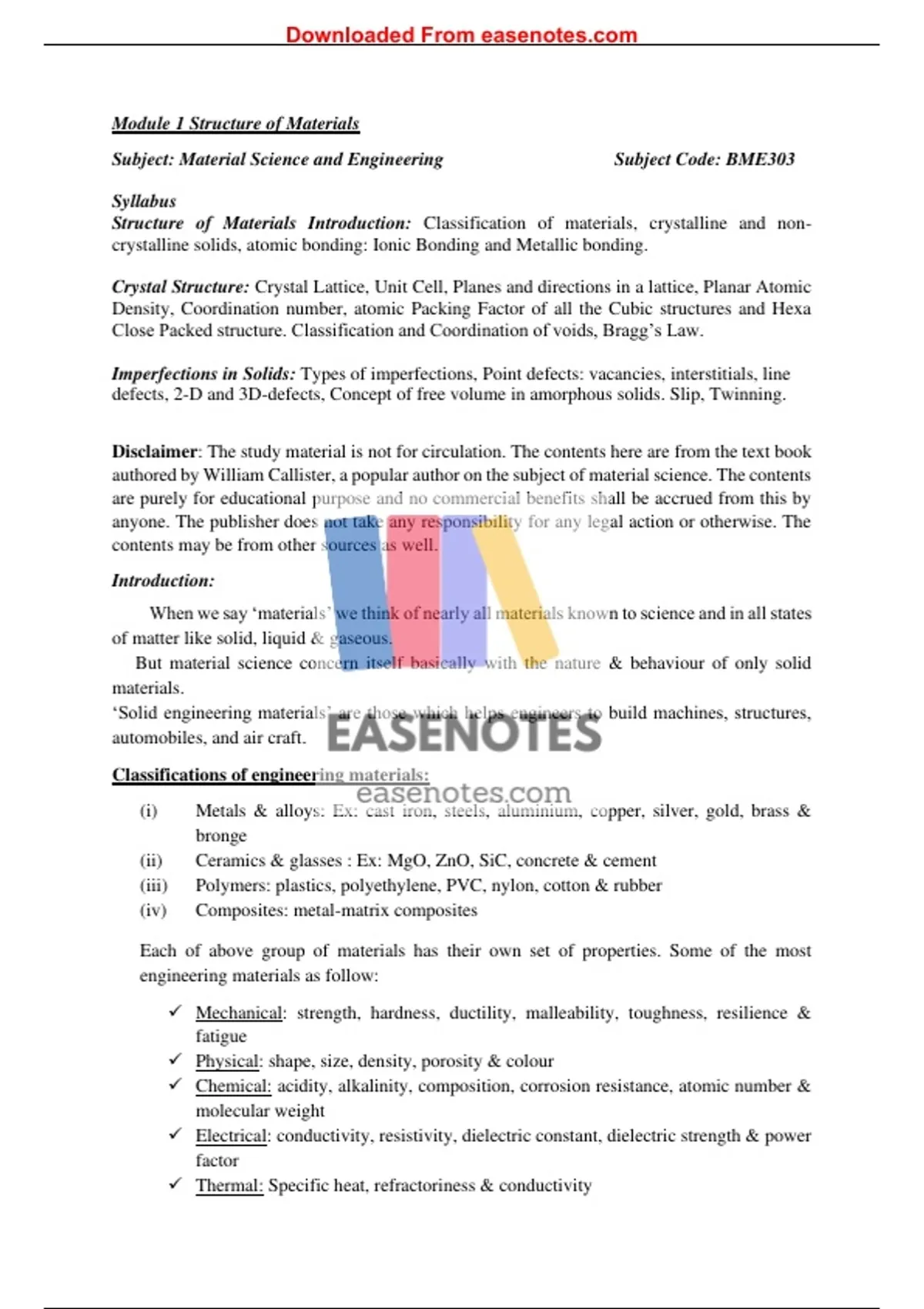 Subject: Material Science and Engineering Subject Code: BME303