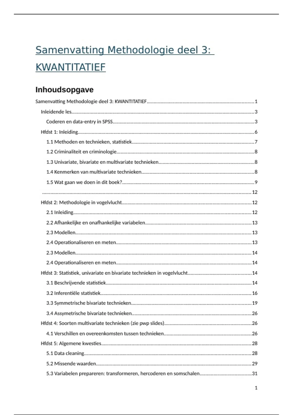 Samenvatting Methodologie deel 3: KWANTITATIEF..............................................................................1