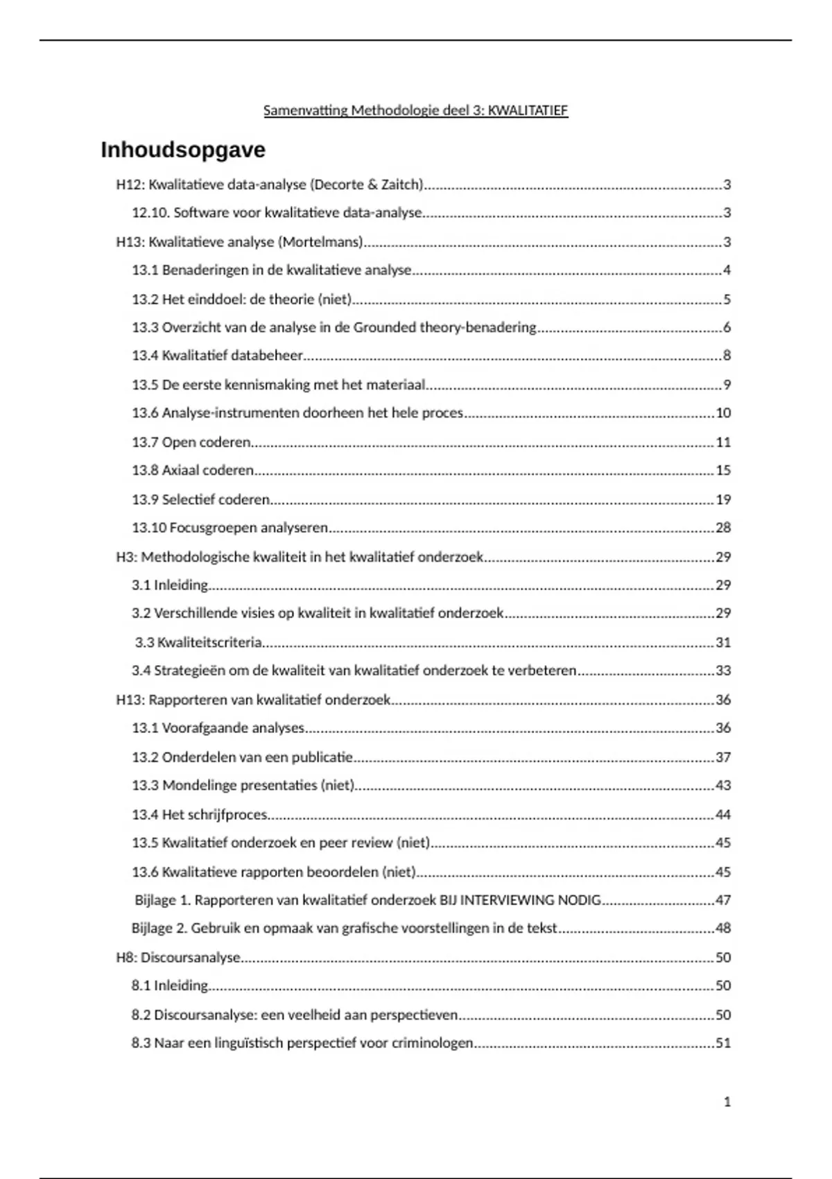 Samenvatting Methodologie deel 3: KWALITATIEF
