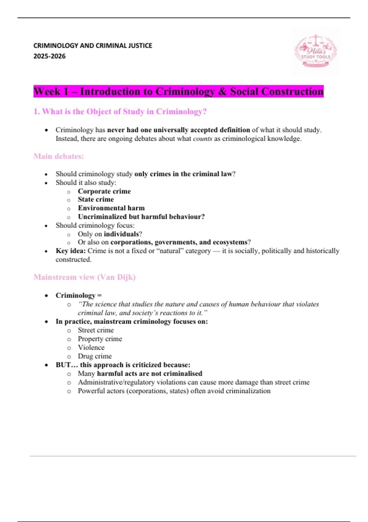 Week 1 – Introduction to Criminology & Social Construction
