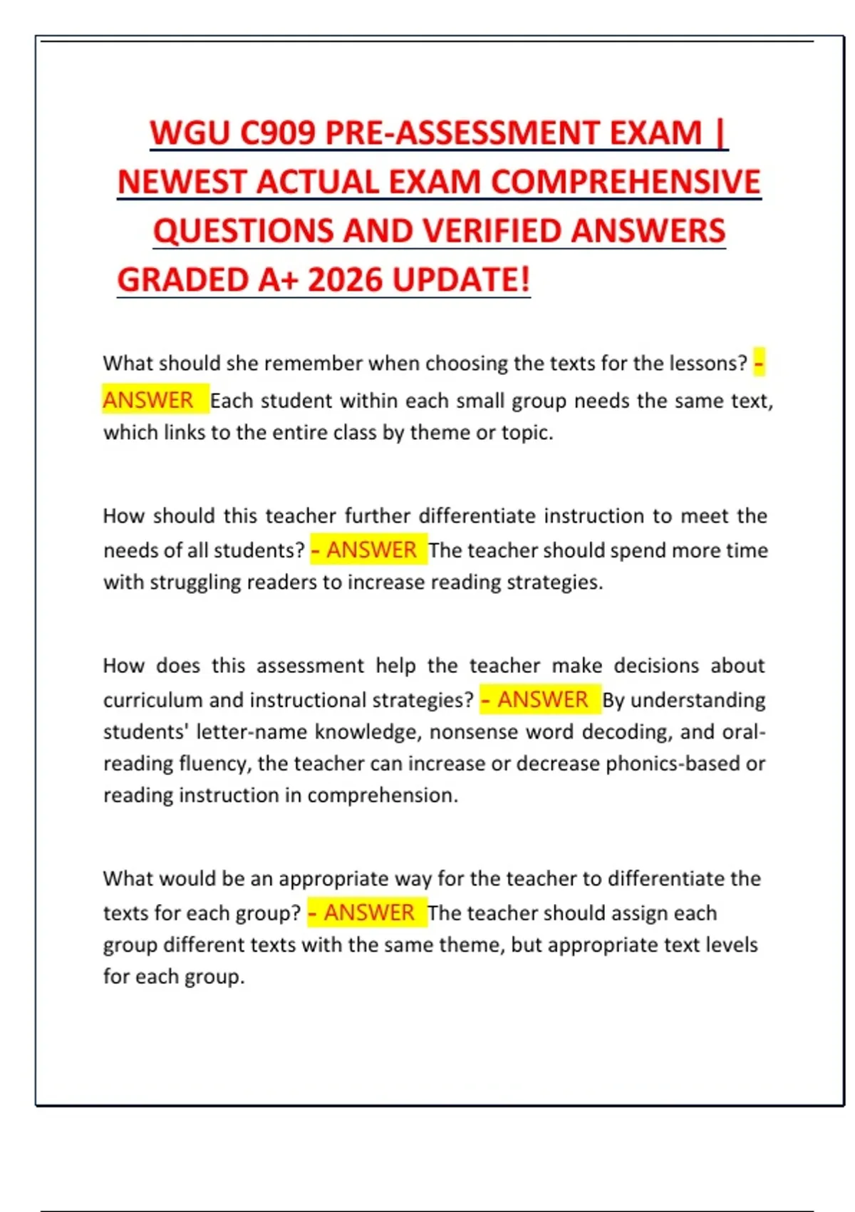 NEWEST ACTUAL EXAM COMPREHENSIVE