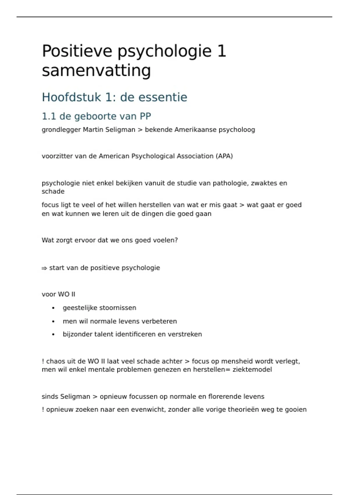 samenvatting Positieve Psychologie 1
