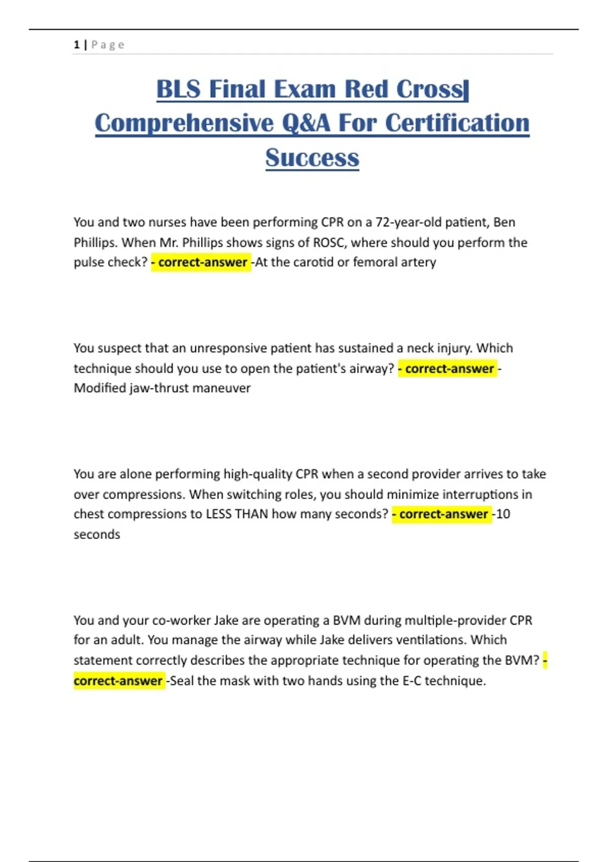 BLS Final Exam Red Cross|