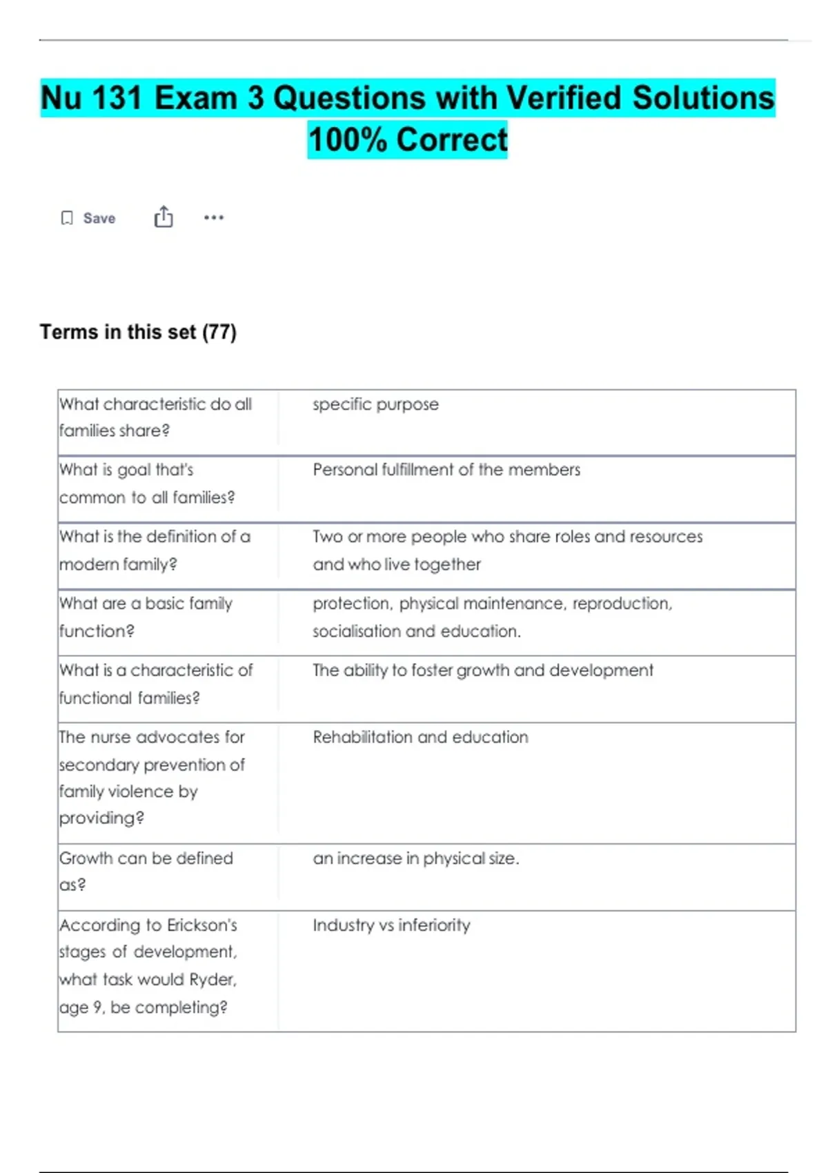 Nu 131 Exam 3 Questions with Verified Solutions 100% Correct
