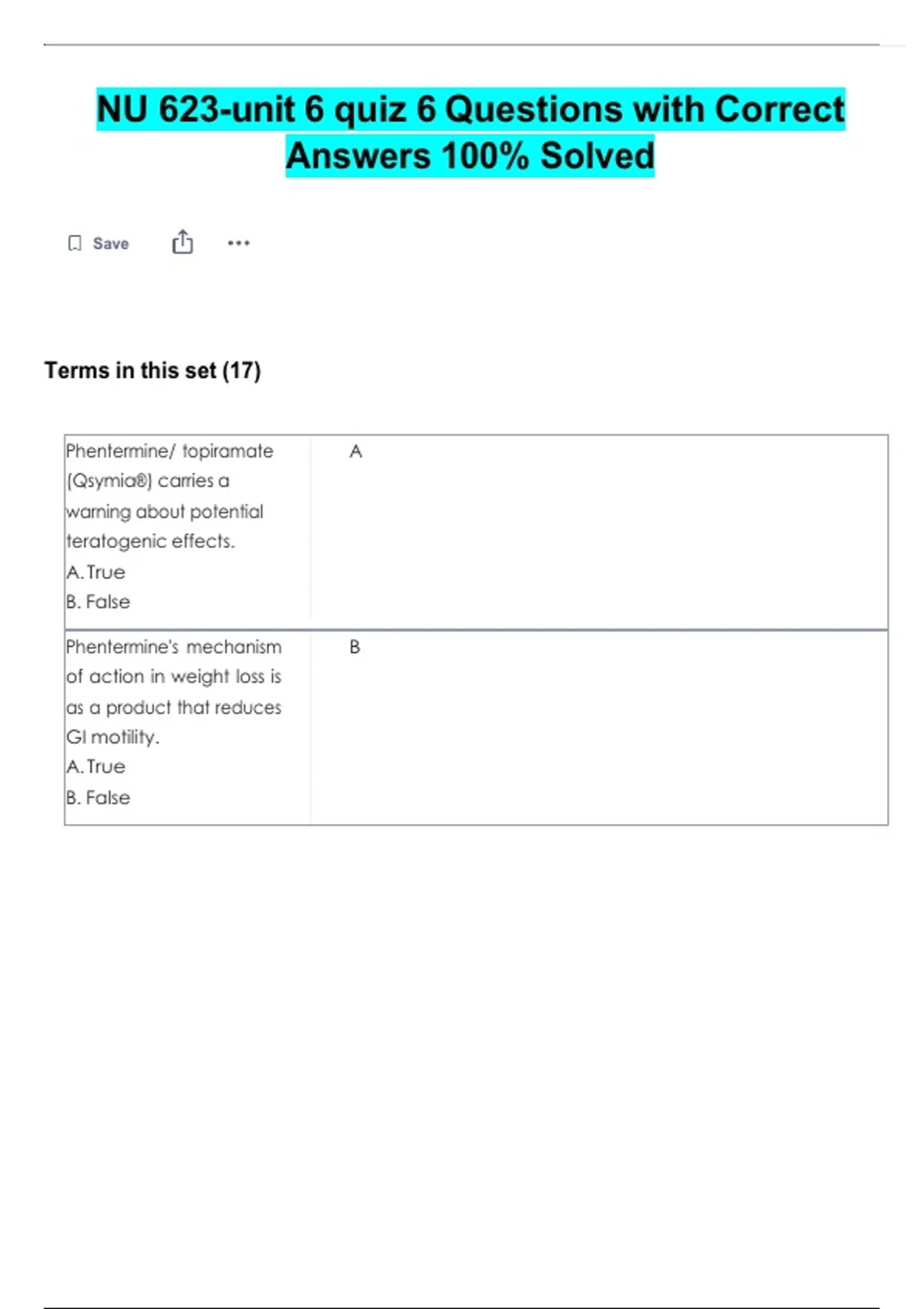 NU 623-unit 6 quiz 6 Questions with Correct Answers 100% Solved
