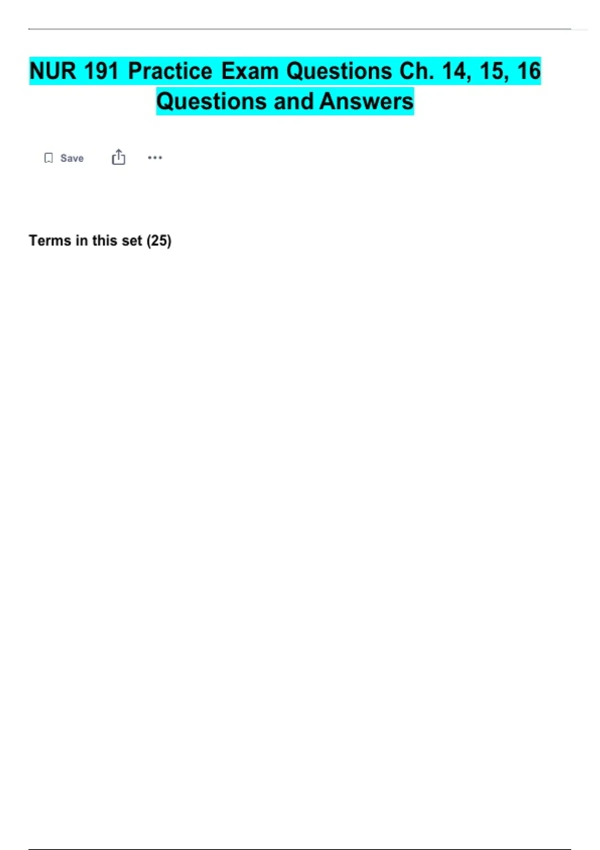 NUR 191 Practice Exam Questions Ch. 14, 15, 16