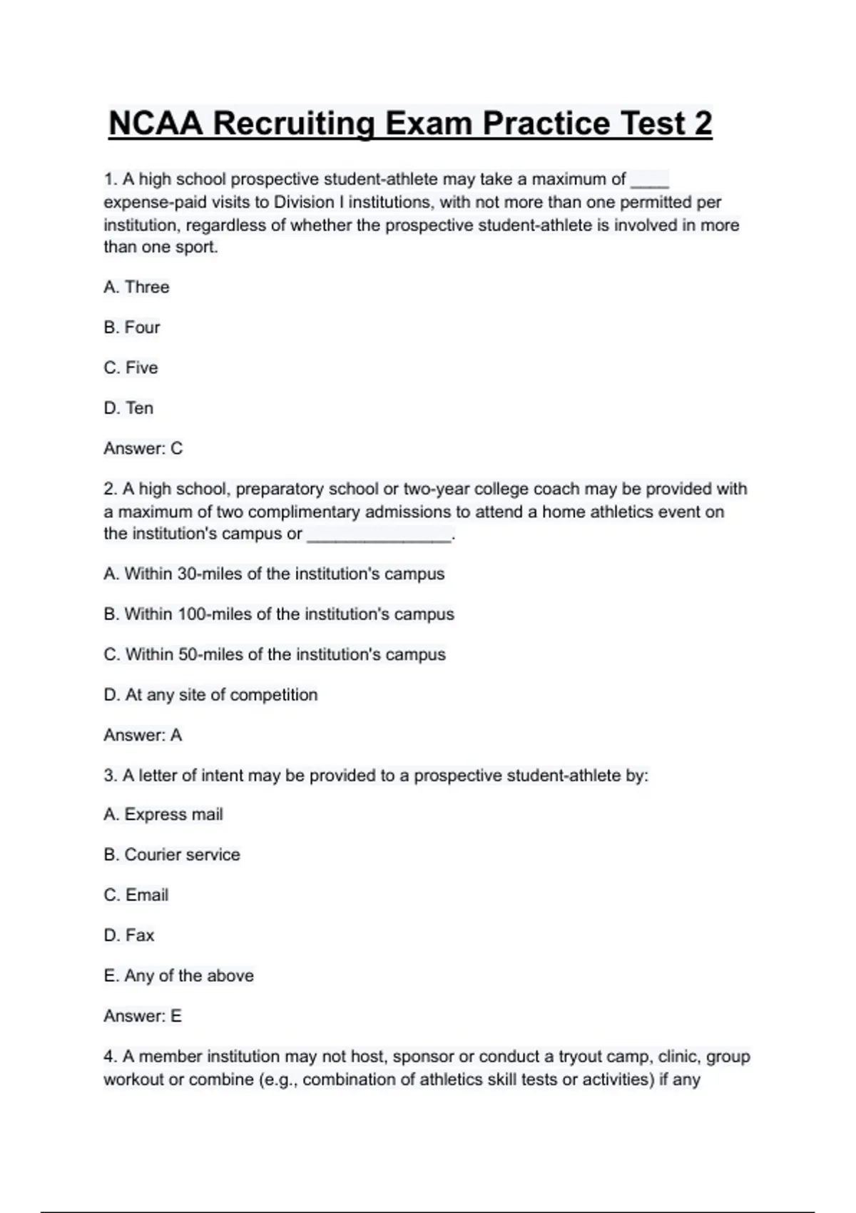 NCAA Recruiting Exam Practice Test 2