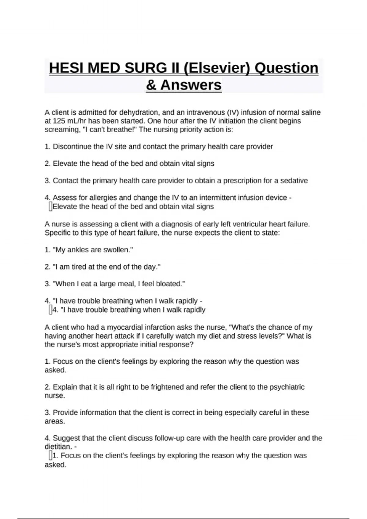 HESI MED SURG II (Elsevier) Question & Answers