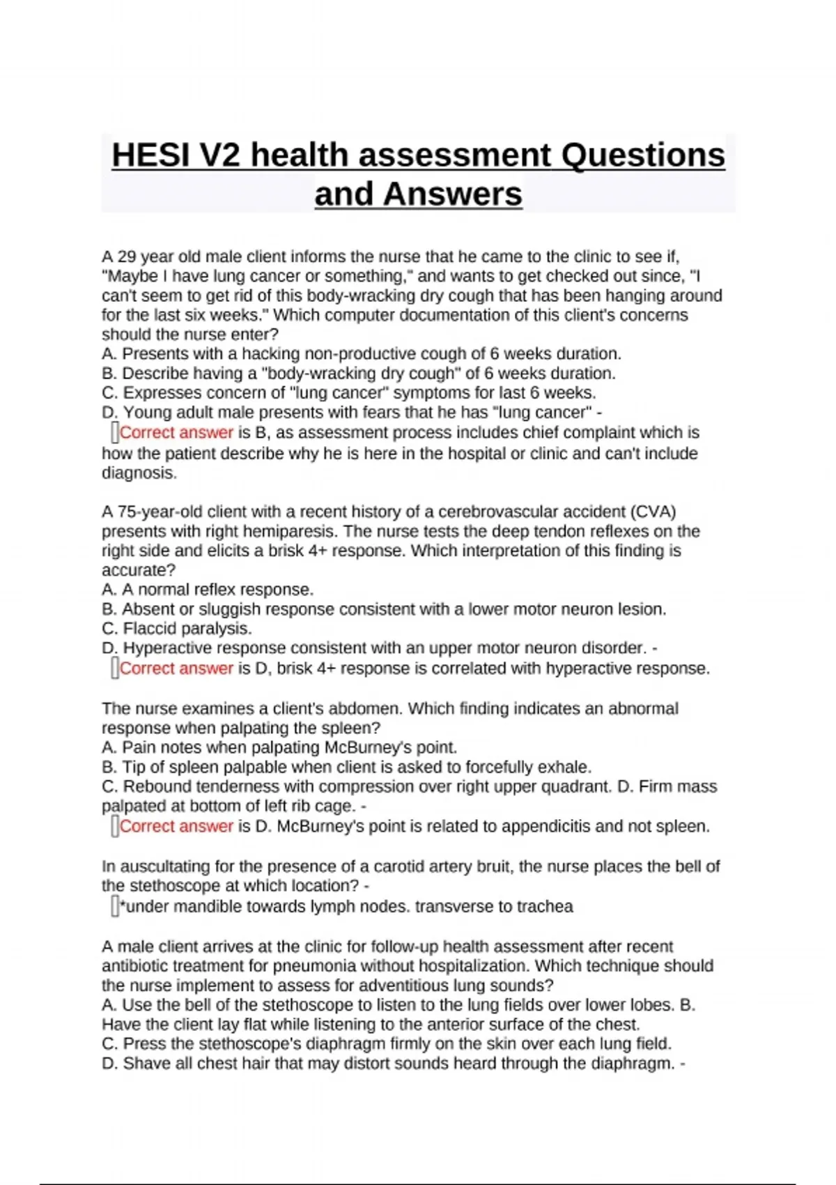 HESI V2 health assessment Questions and Answers.