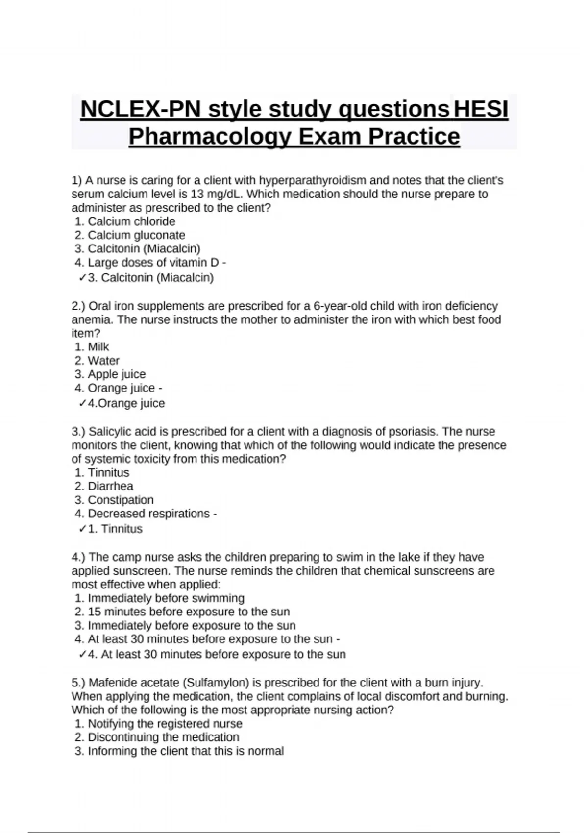 NCLEX-PN style study questions HESI Pharmacology Exam Practice