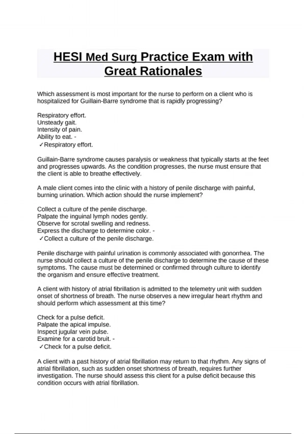 HESI Med Surg Practice Exam with Great Rationales