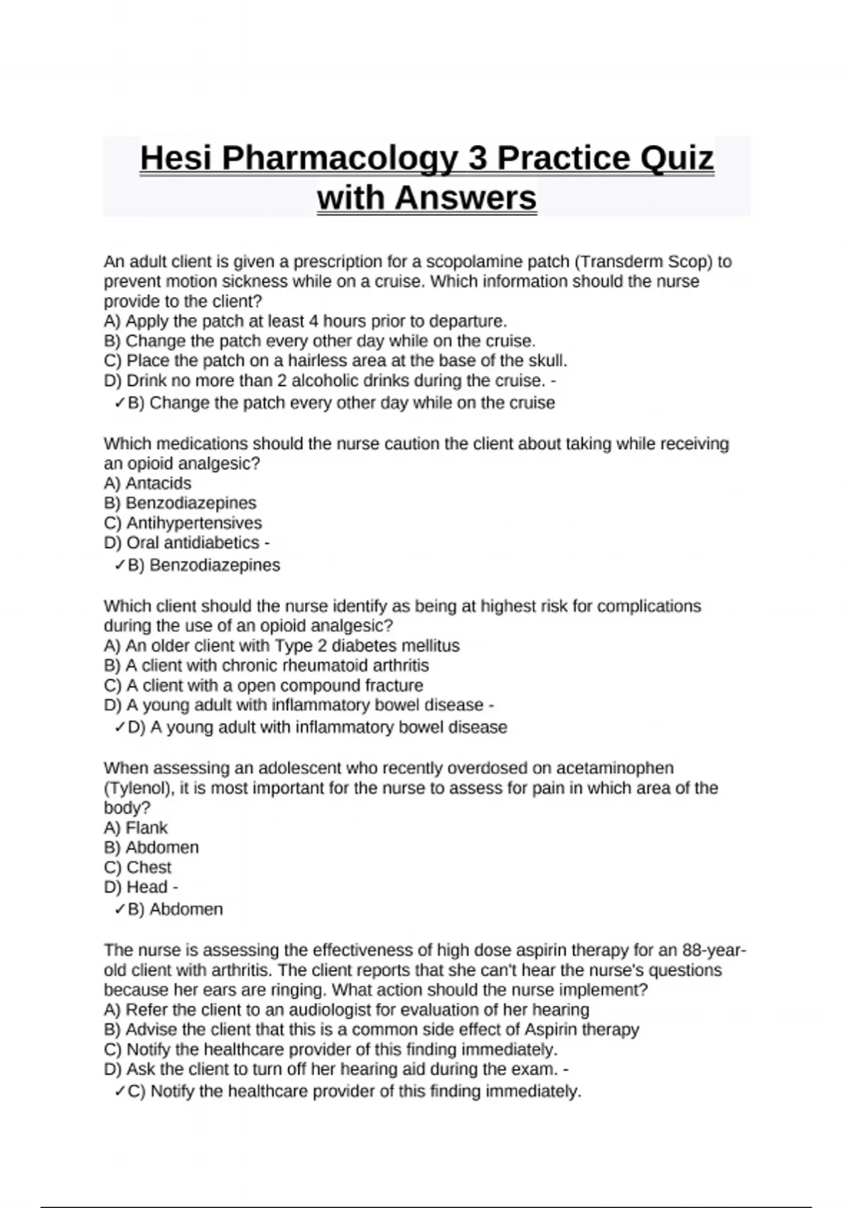 Hesi Pharmacology 3 Practice Quiz with Answers