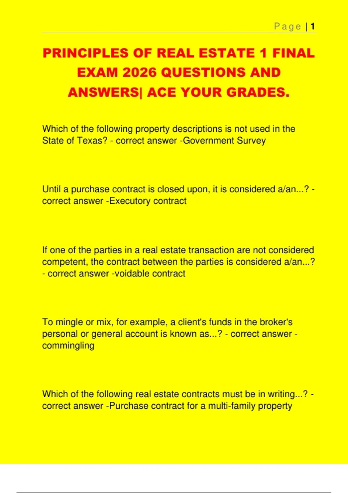 PRINCIPLES OF REAL ESTATE 1 FINAL